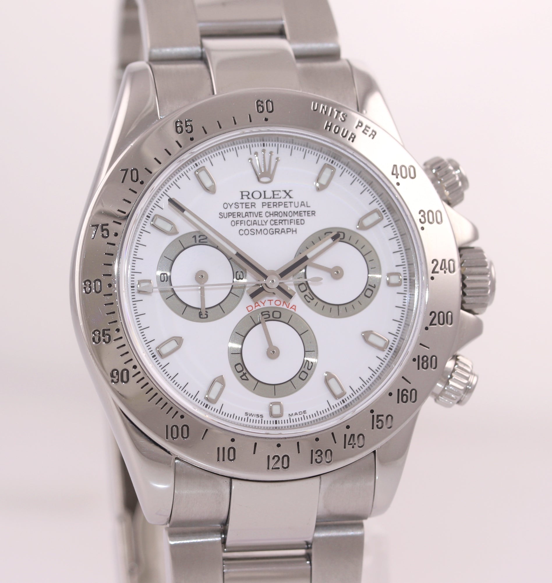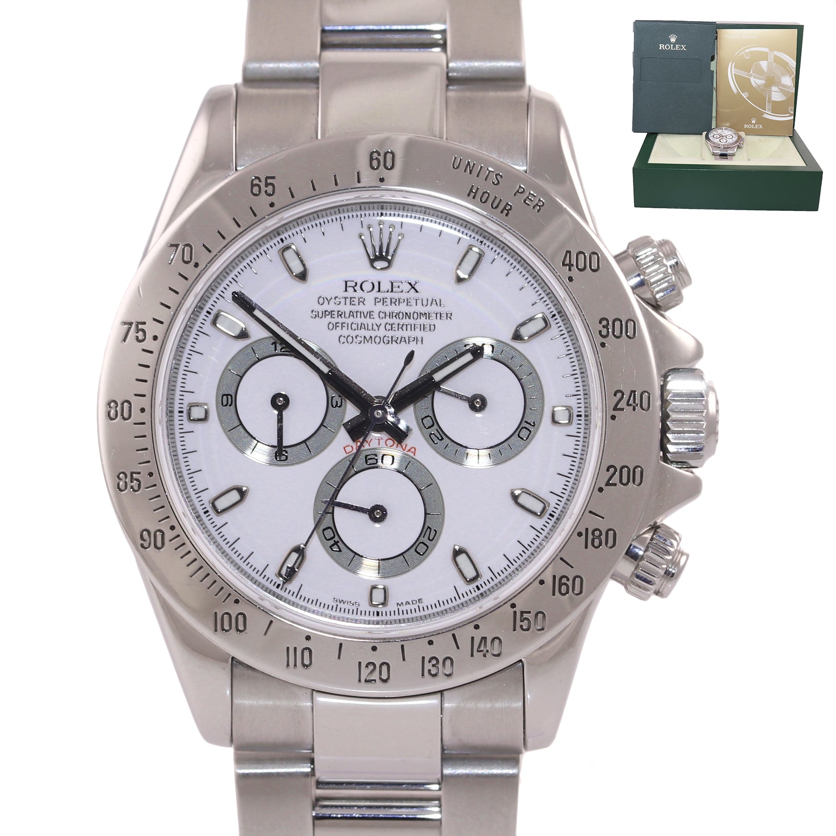 MINT Rolex Daytona Cosmograph 116520 White Steel Chrono Watch Box