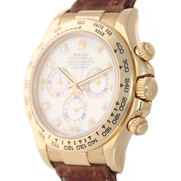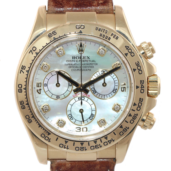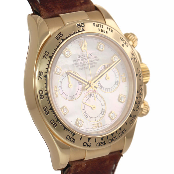 PAPERS Rolex Daytona MOP Diamond Factory Dial 116518 18K Yellow Gold Chronograph Watch Box