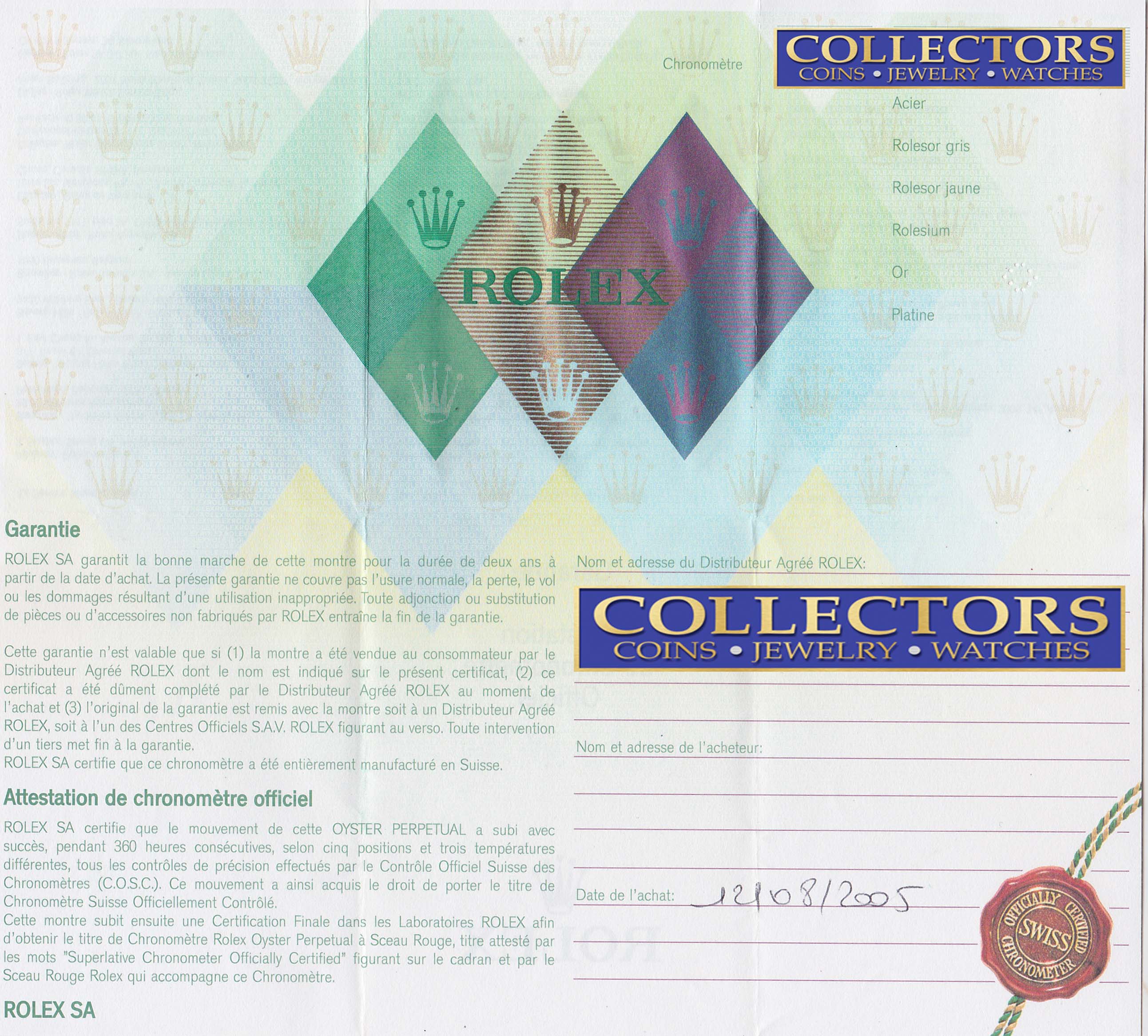 | Papers | Yes, this item will include its ORIGINAL ROLEX Warranty papers & a Collectors Coins & Jewelry certificate of appraisal and authenticity as per buyer request. |