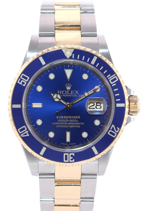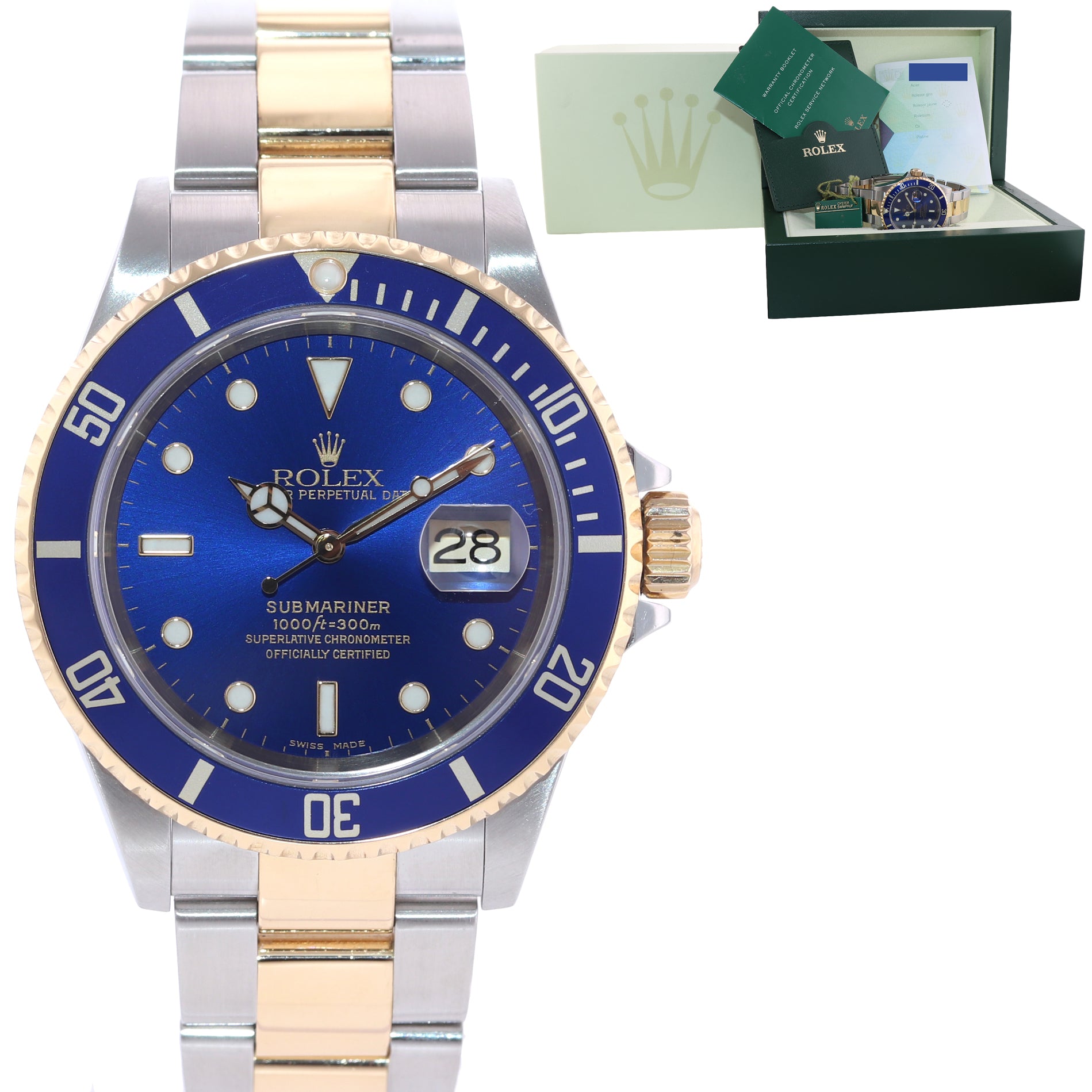 Rolex Submariner 16613 Two Tone Steel 18k Gold Blue Dial SEL 40mm No Holes Watch