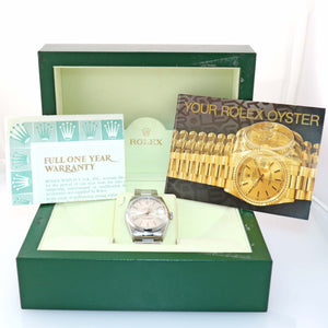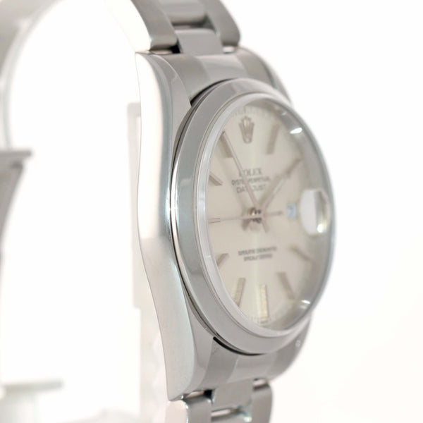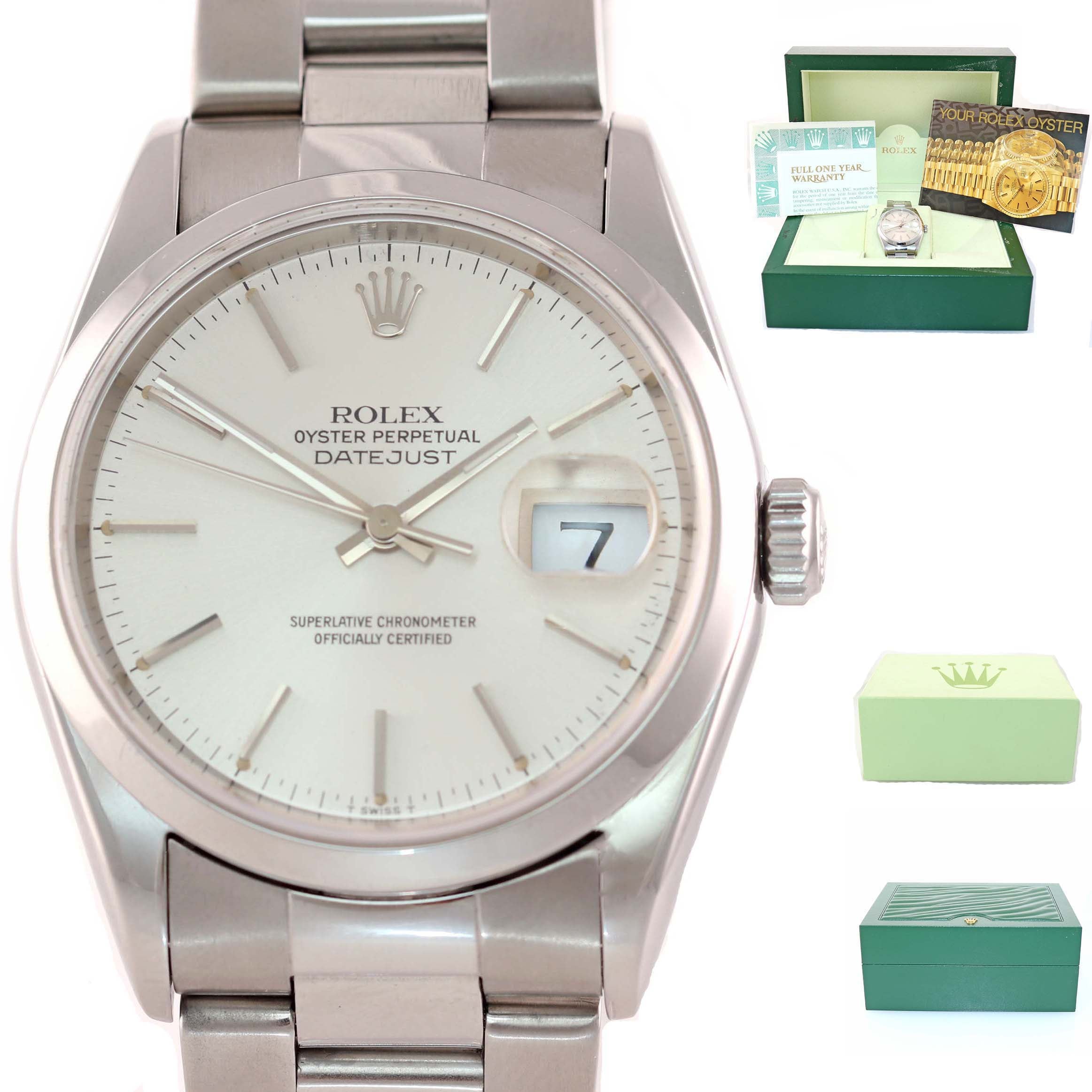 PAPERS Rolex DateJust 36mm 16200 Steel Silver Stick Oyetser Watch Box & Original Papers