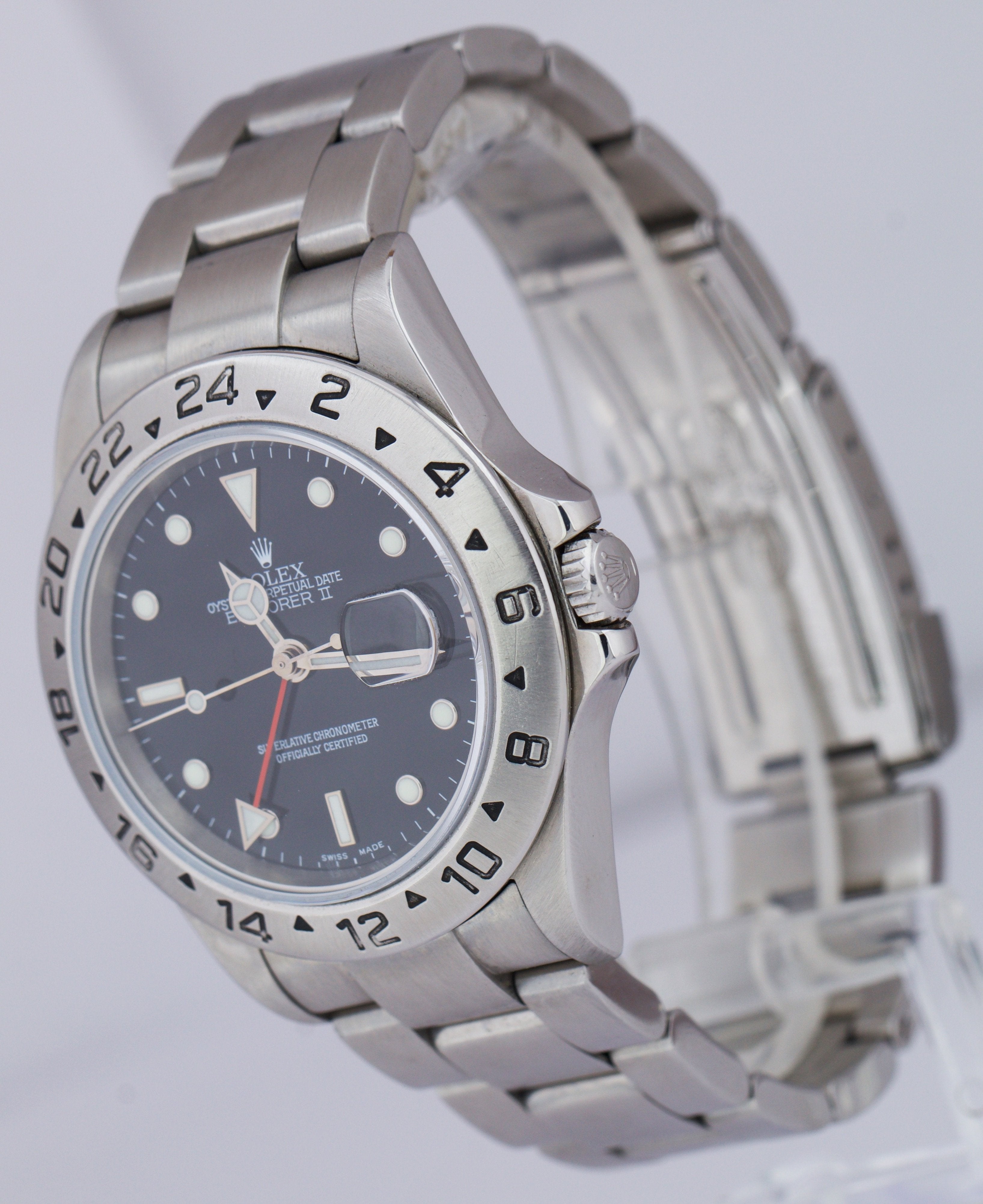 2007 Rolex Explorer II NO-HOLES CASE Stainless Black Date 40mm Watch 16570 T