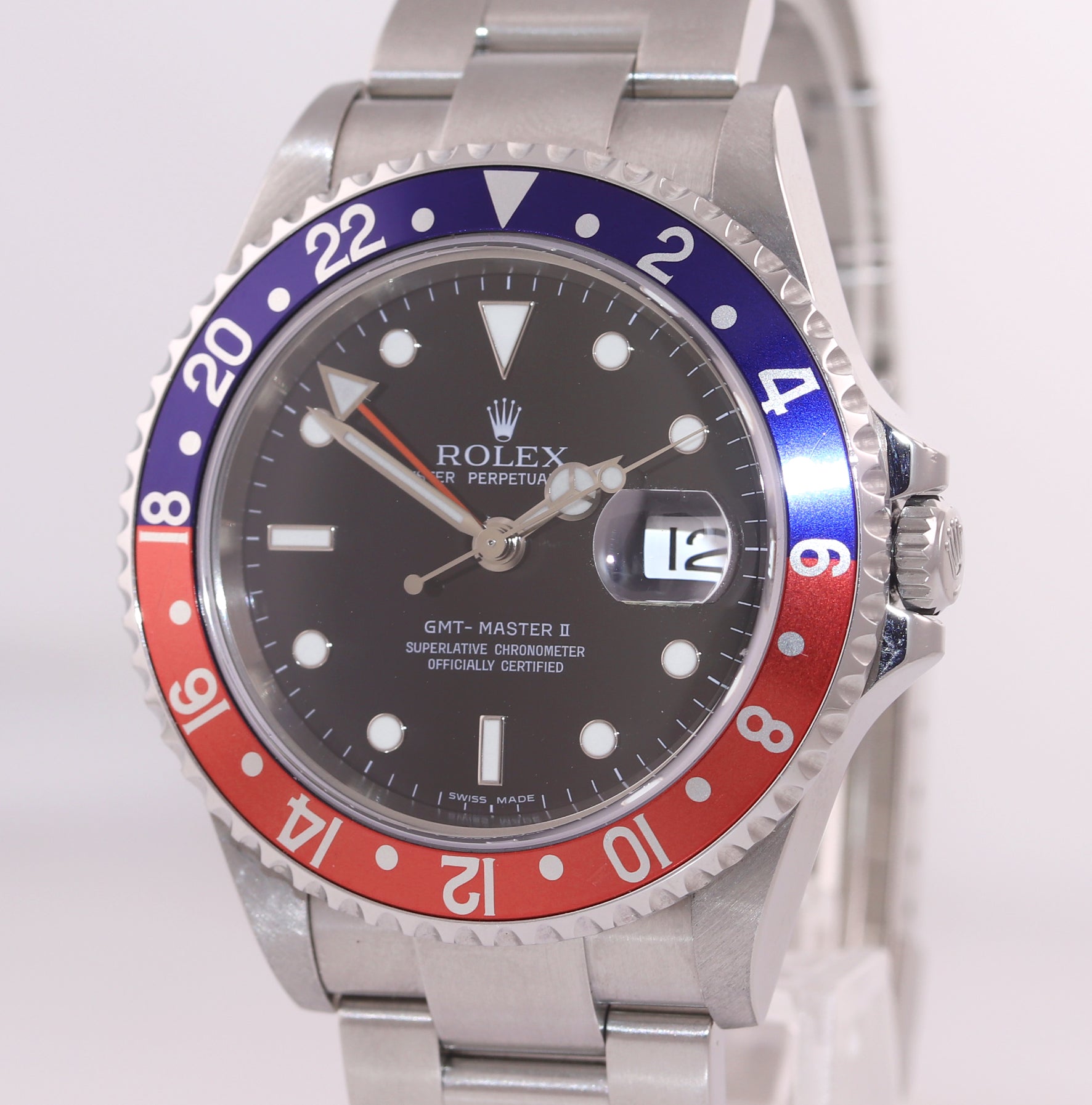 UNPOLISHED 2007 Rolex GMT-Master Pepsi Steel 16710 40mm Watch No Holes Error Rectangular Dial Watch