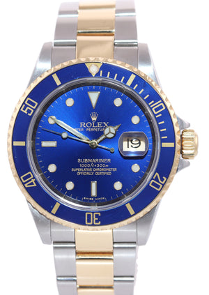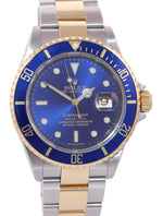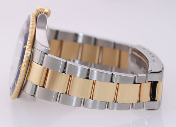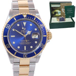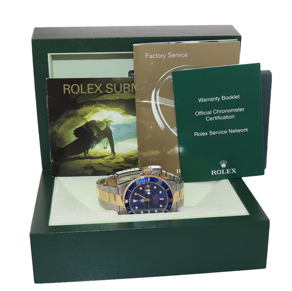 2008 GOLD BUCKLE ENGRAVED Rolex Submariner 16613 Gold Steel Blue Watch Rehaut