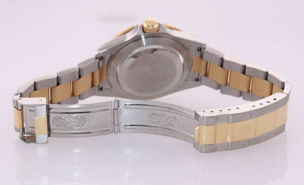 | Band | Original Rolex SEL (Solid End Link) Two-Tone Oyster Bracelet with a Flip Lock extendable Deployment Clasp in gold. |