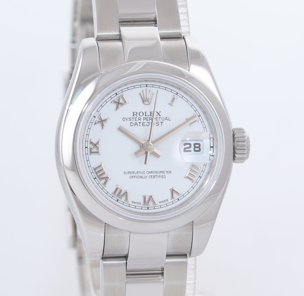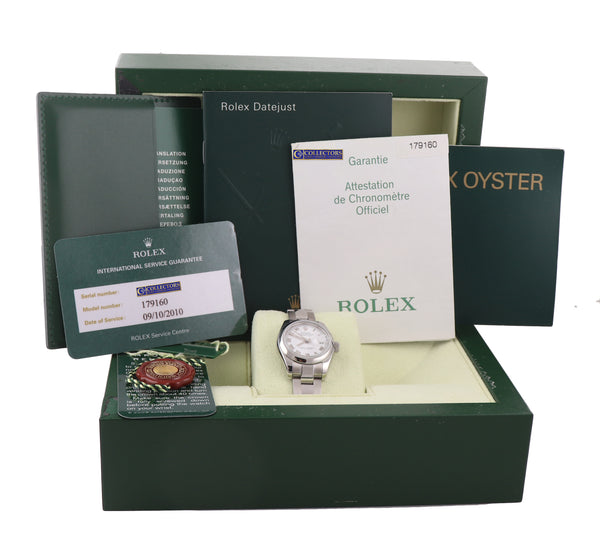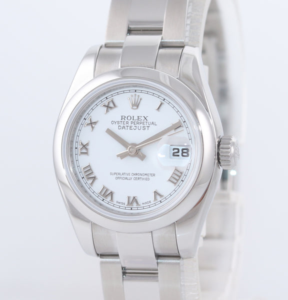 PAPERS 2007 MINT Ladies Rolex DateJust 26mm White Roman 179160 Steel Watch