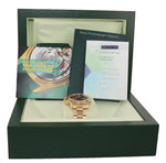 | Bezel | Original Rolex 18K Yellow Gold Bezel with an engraved tachymetric scale. |