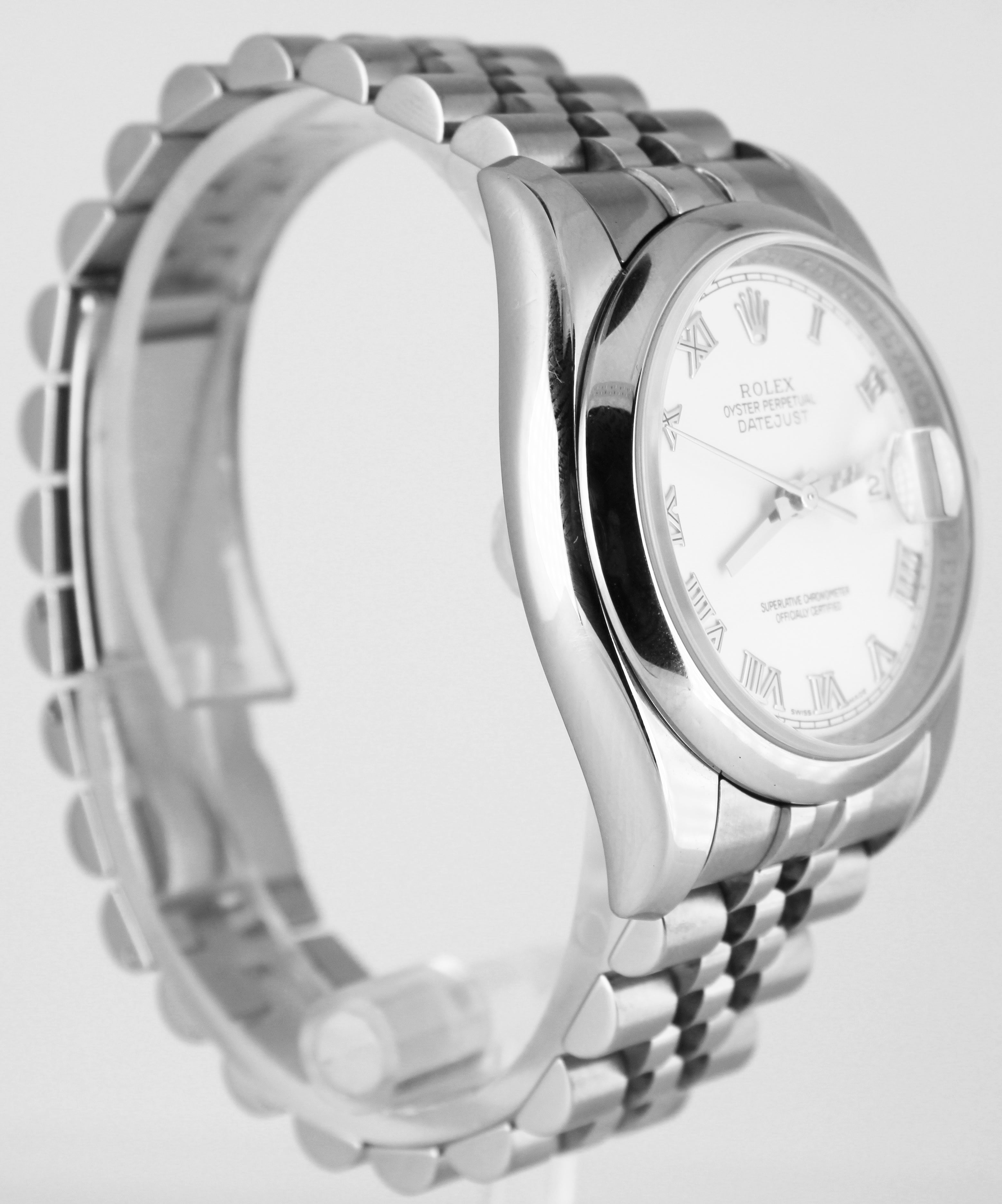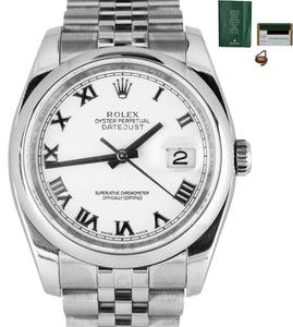 2008 Rolex DateJust White Roman 36mm 116200 Stainless Steel Jubilee Smooth Watch