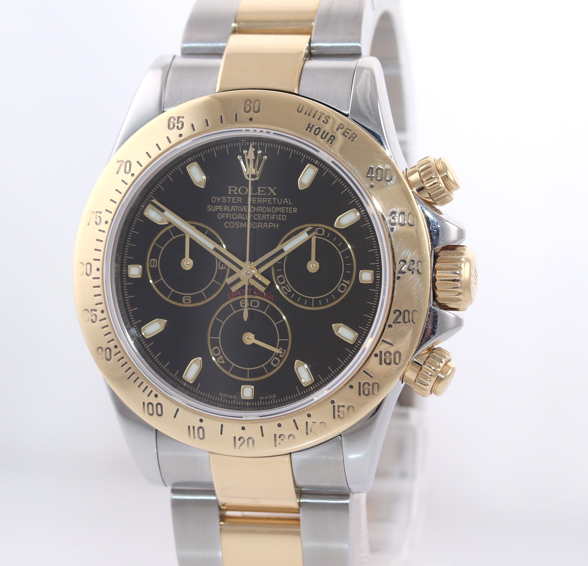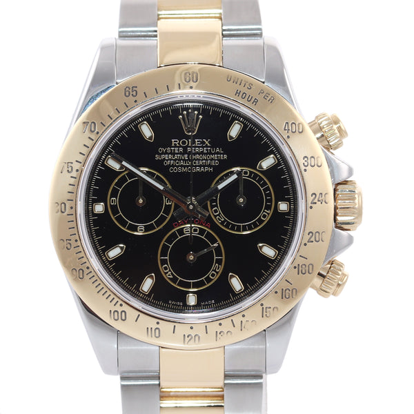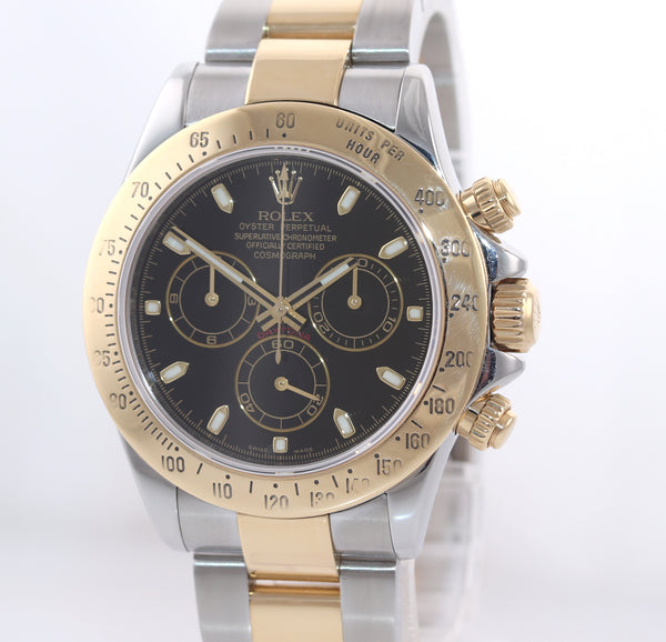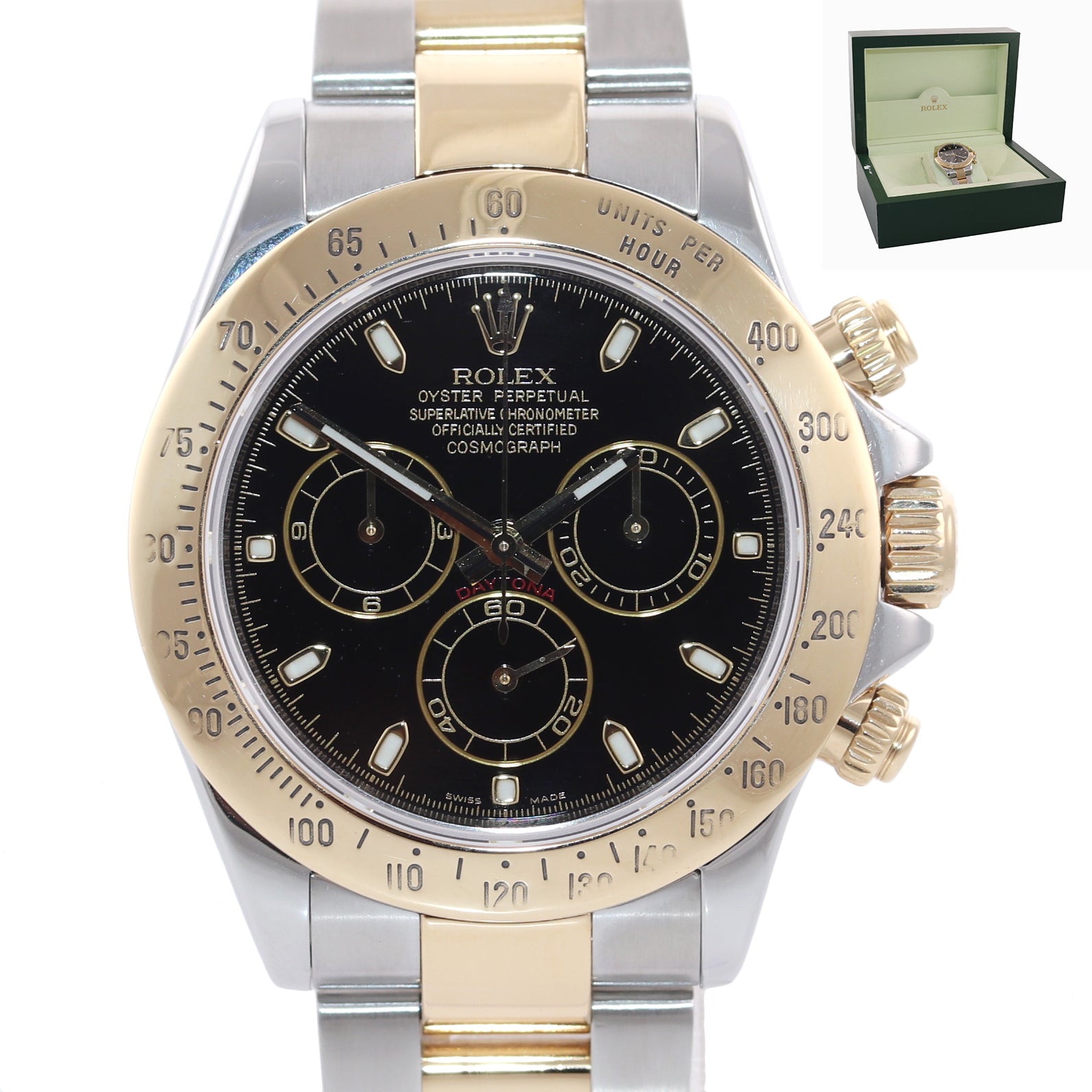 2008 Rolex Daytona 116523 Black Steel 18k Yellow Gold Two Tone Watch Box
