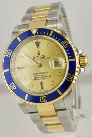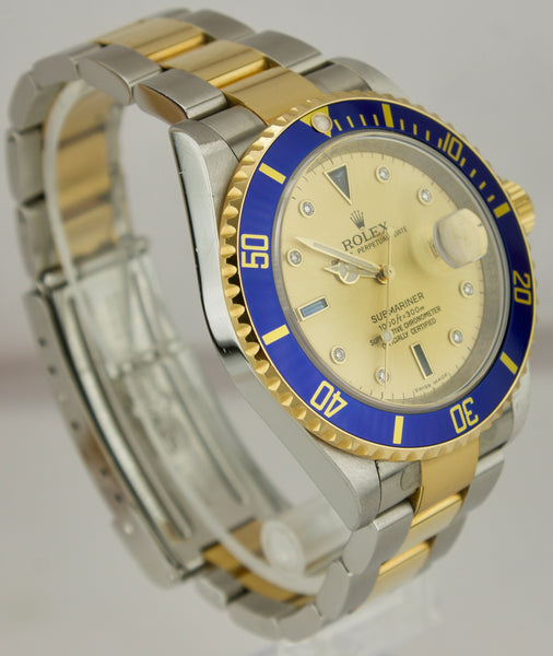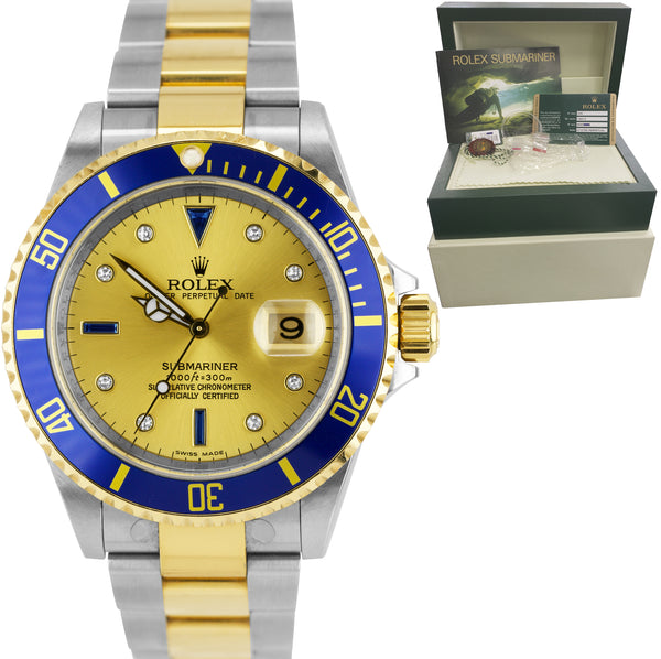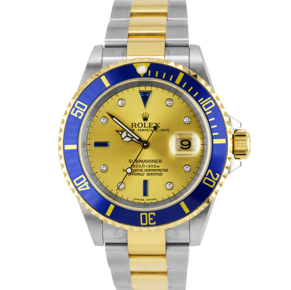 2008 Rolex Submariner Date REHAUT Champagne Sapphire Diamond Serti Watch 16613