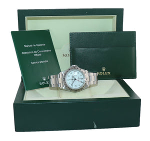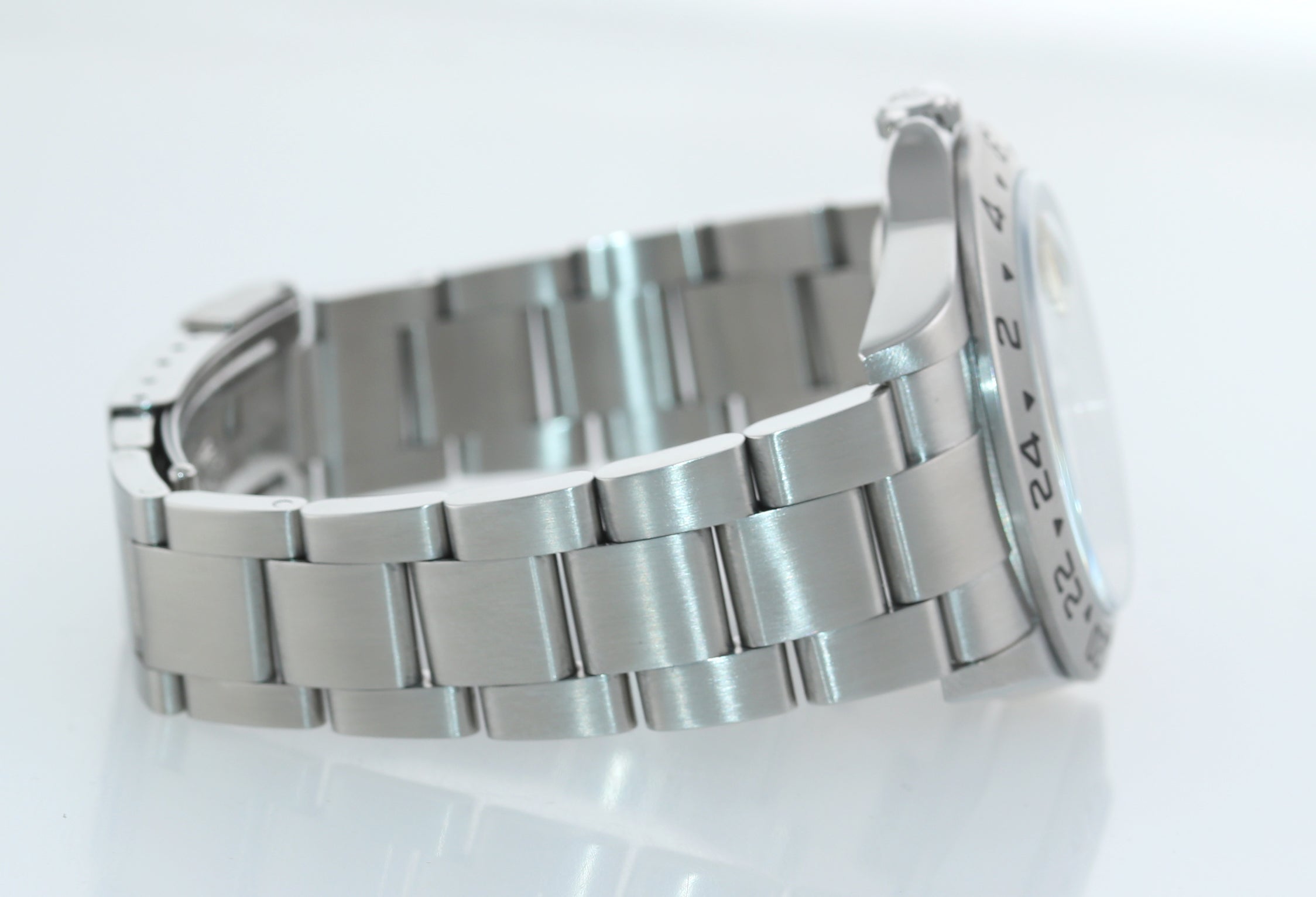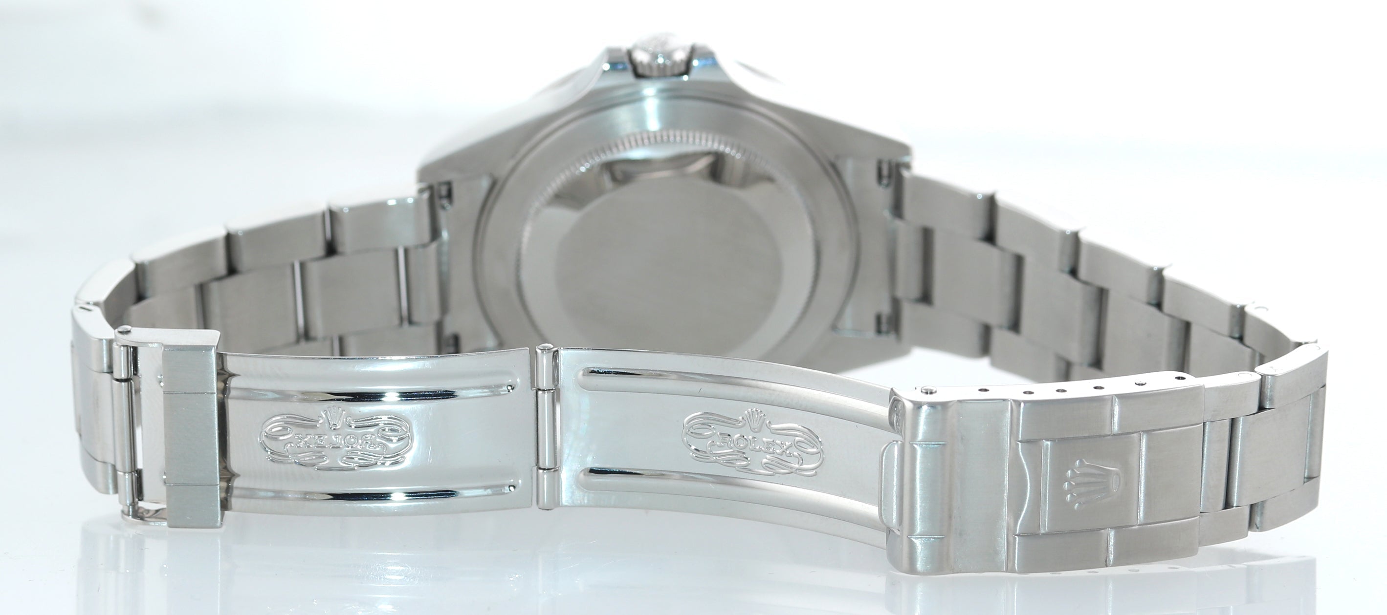 | Bezel | Rolex Fixed 24-Hour Graduated Stainless Steel Bezel with a RARE inner-bezel (flange/rehaut) engraving featuring "ROLEX" several times and the watch's unique serial number |