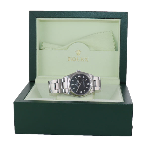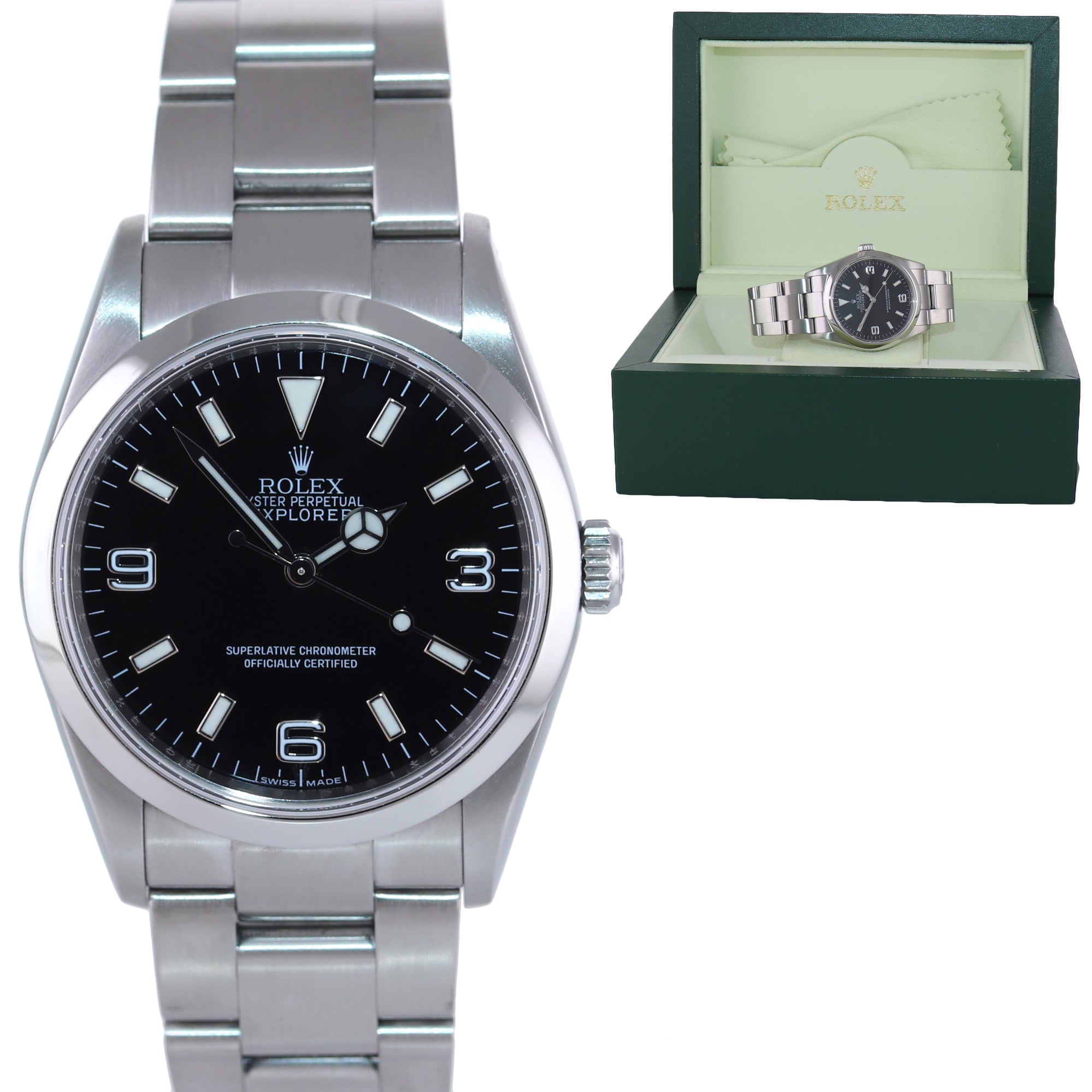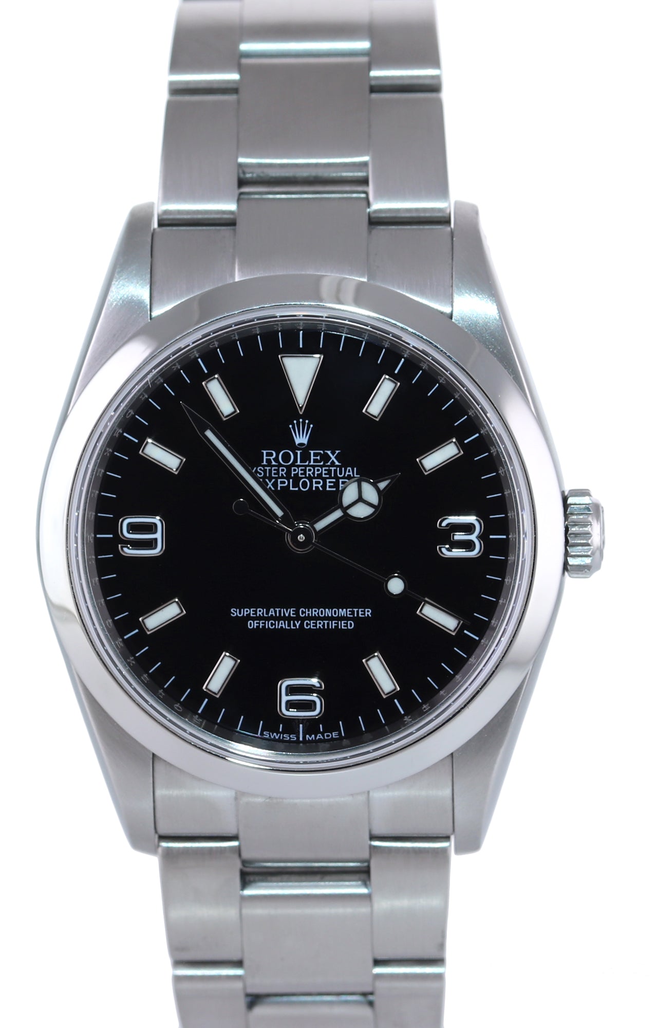 2009 ENGRAVED REHAUT Rolex Explorer I Black 36mm 114270 Steel Black Arabic Watch