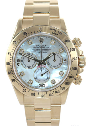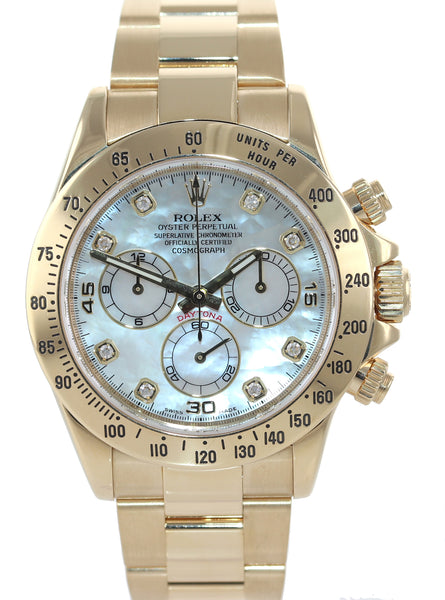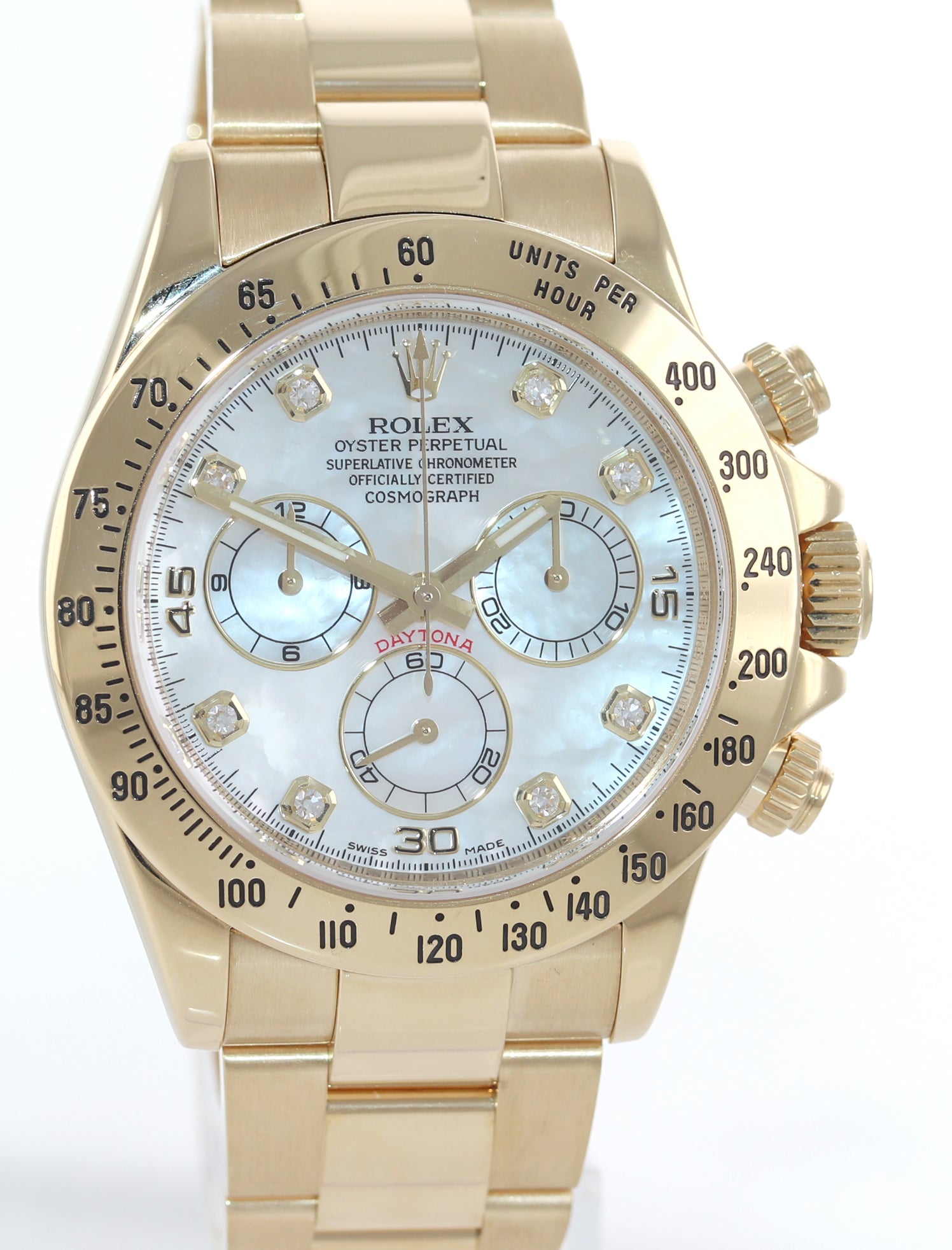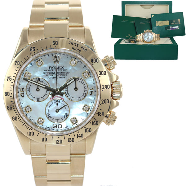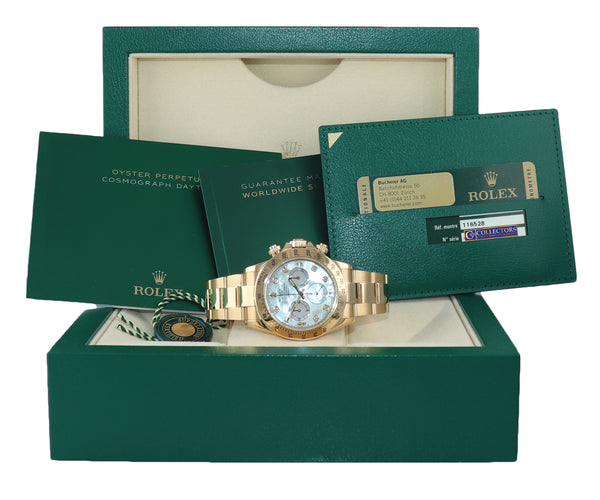PAPERS Rolex Daytona 116528 MOP DIAMOND 18K Yellow Gold 40mm Watch BoxCollectors