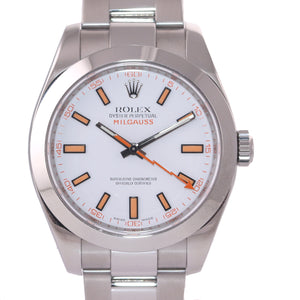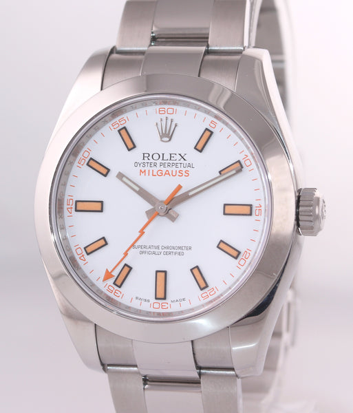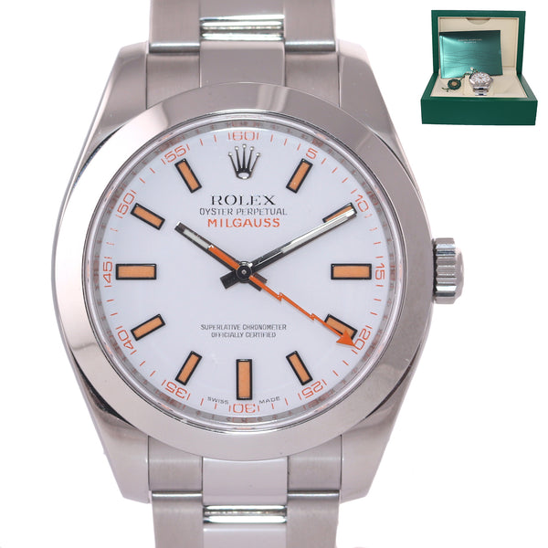 MINT Rolex Milgauss 116400 White Orange 40mm Steel Oyster Anti-Magnetic Watch