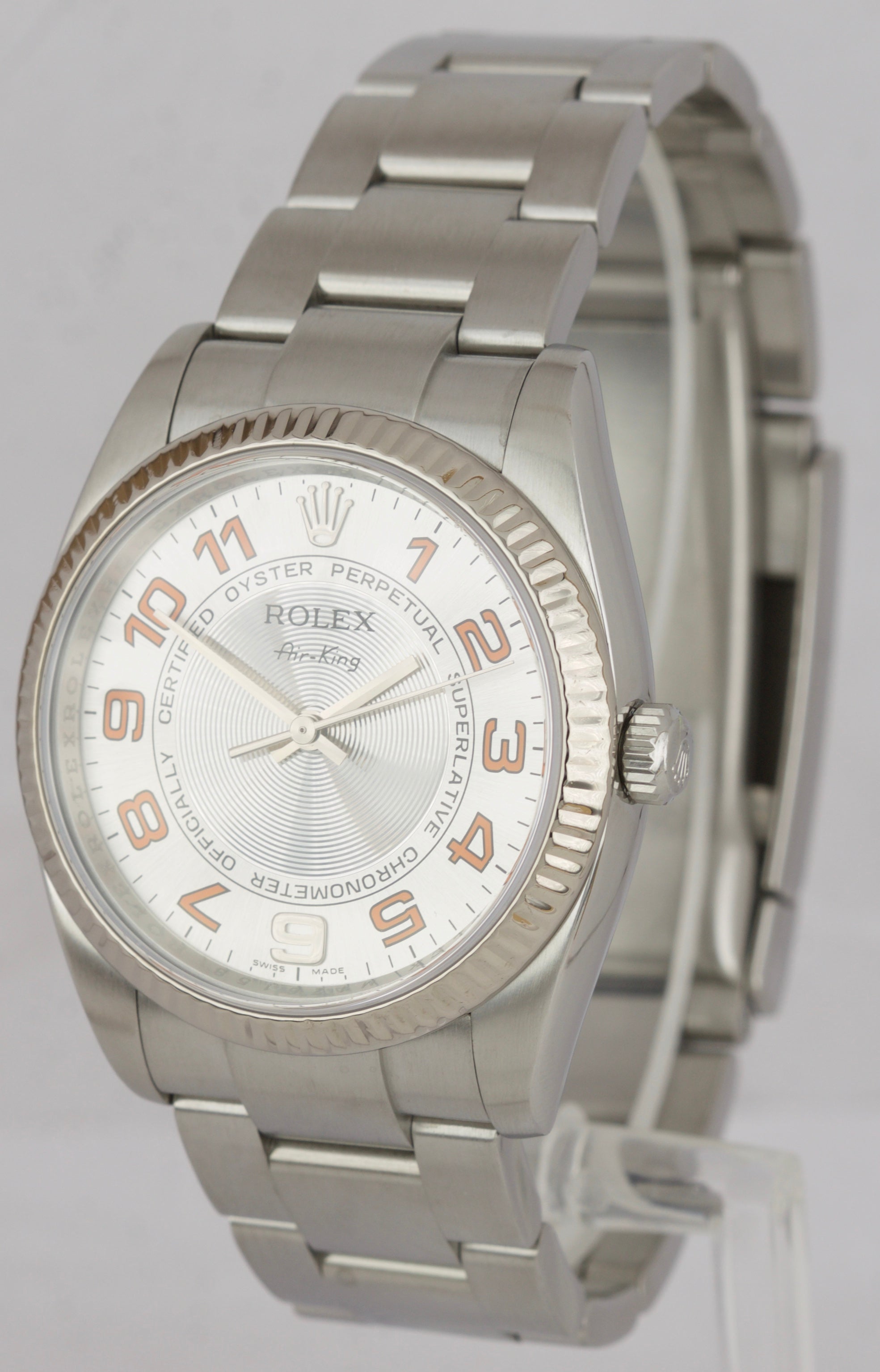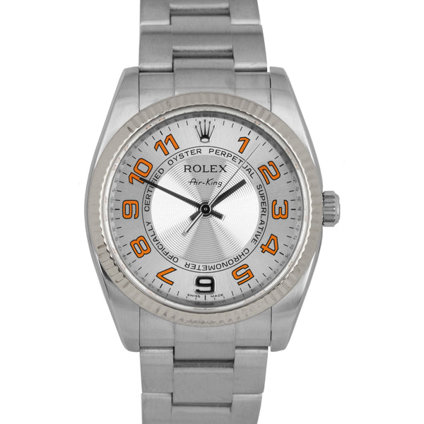 2008 Rolex Air-King Oyster Perpetual Silver Orange Concentric 34mm Watch 114234