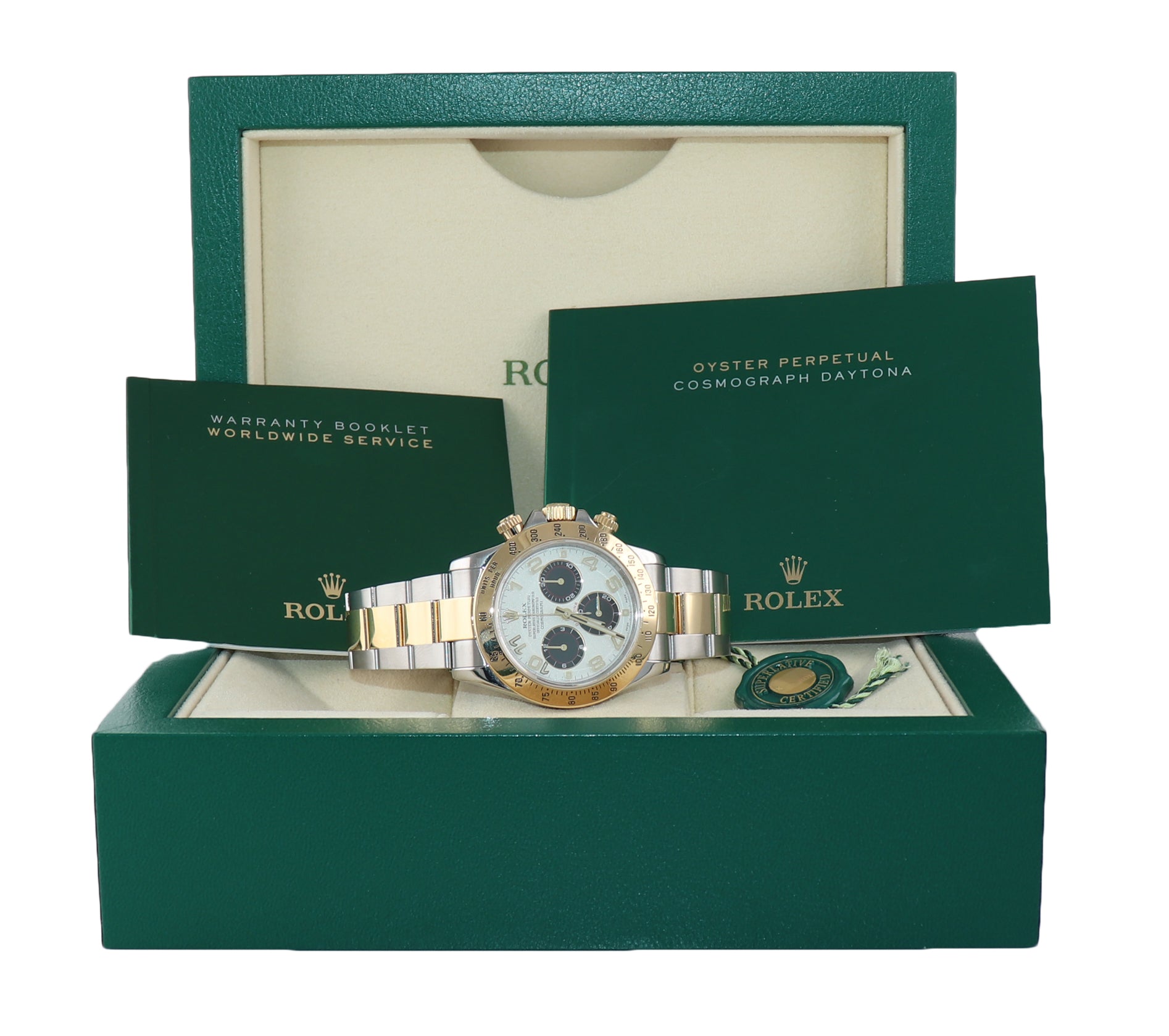 RARE Rolex Daytona 116523 White Panda 18k Yellow Gold Two Tone Watch REHAUT