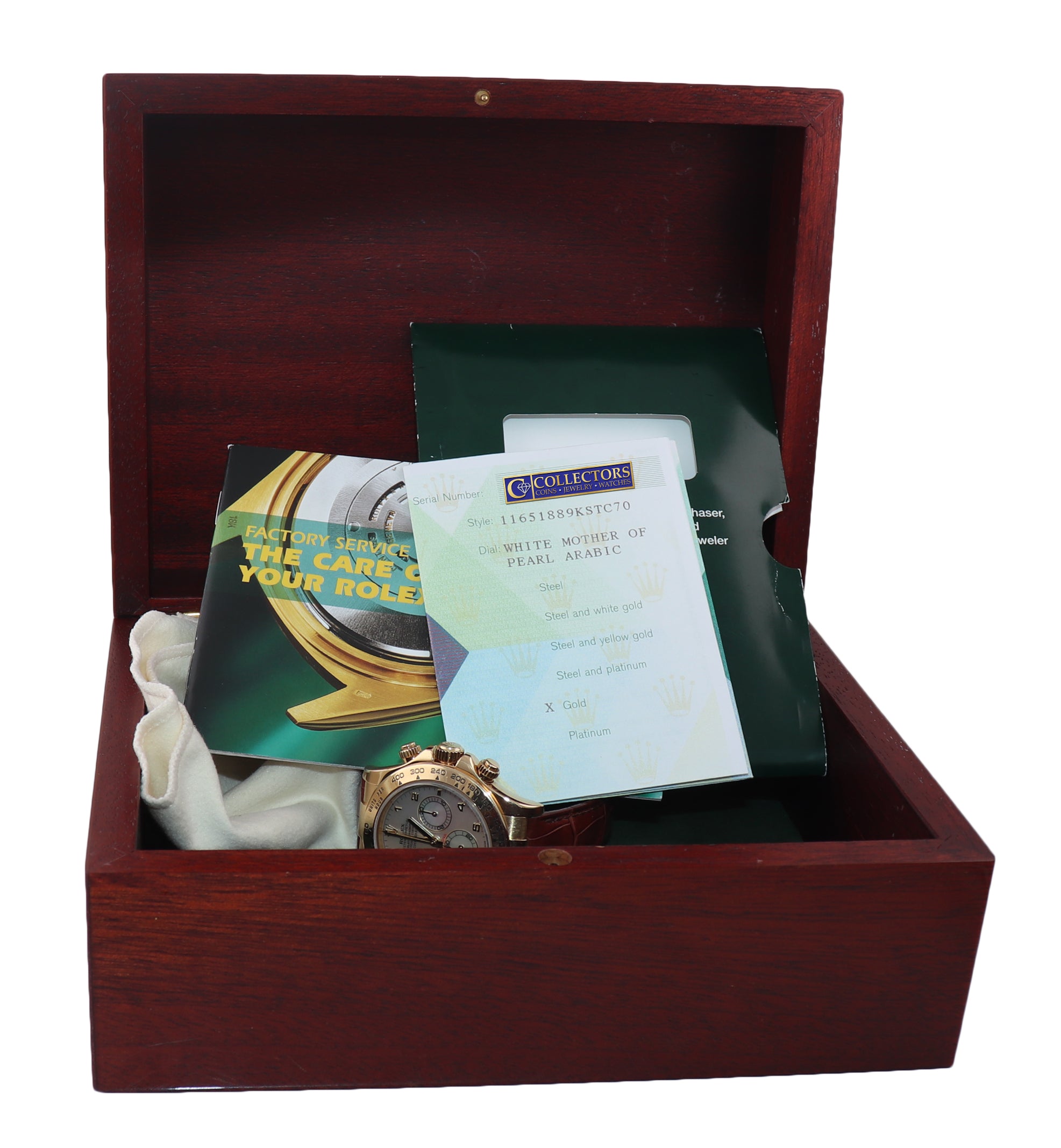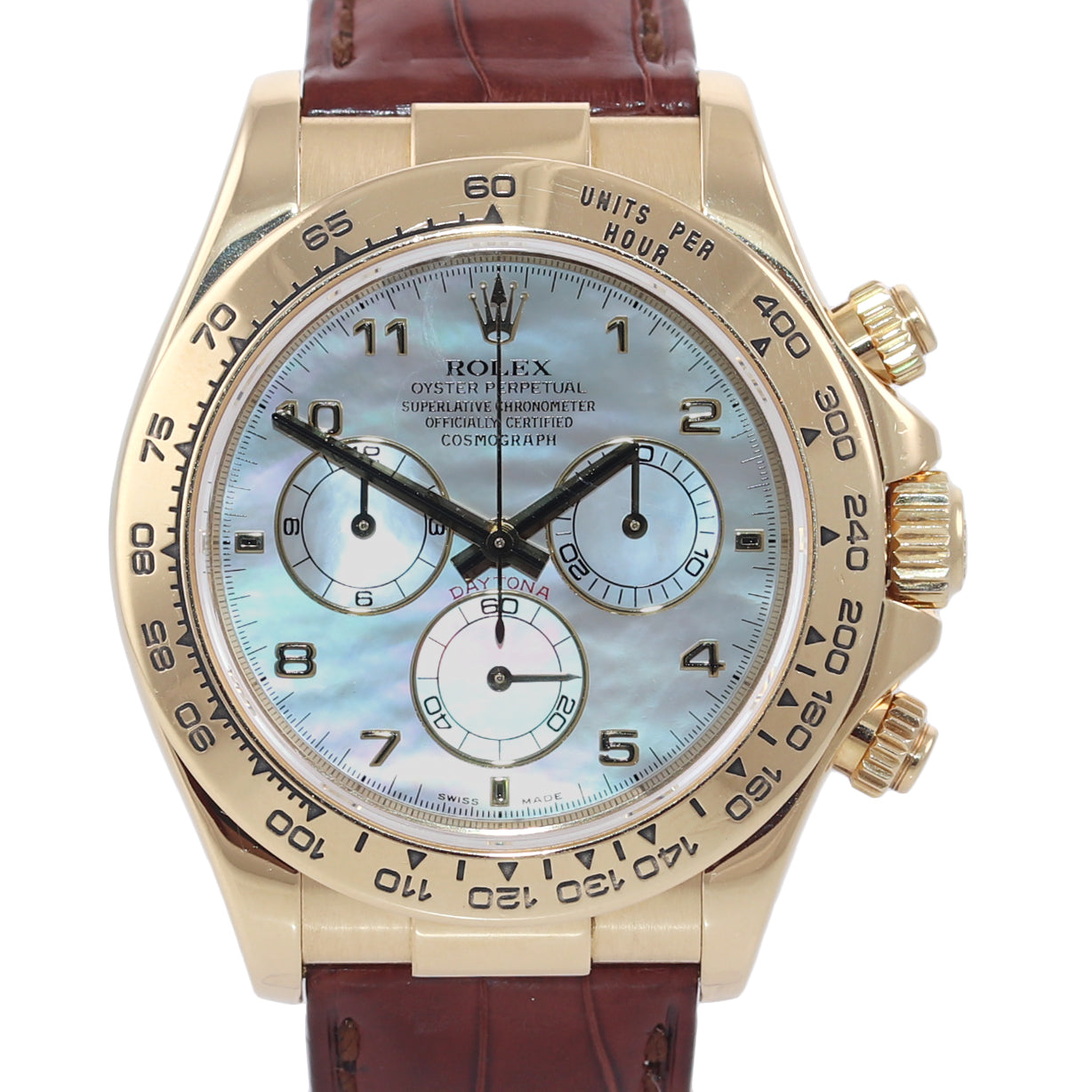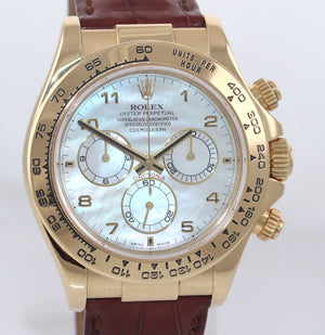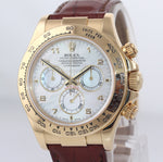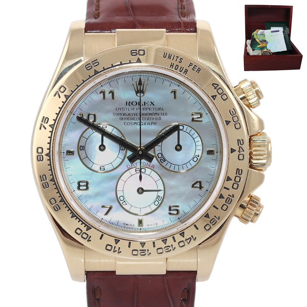 BOX PAPERS Rolex Daytona MOP Mother of Pearl 116518 Leather Yellow Gold Watch