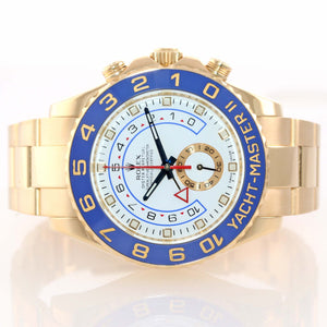 MINT 2016 BLUE HANDS Men's Rolex Yacht-Master 2 Yellow Gold 116688 44mm Watch