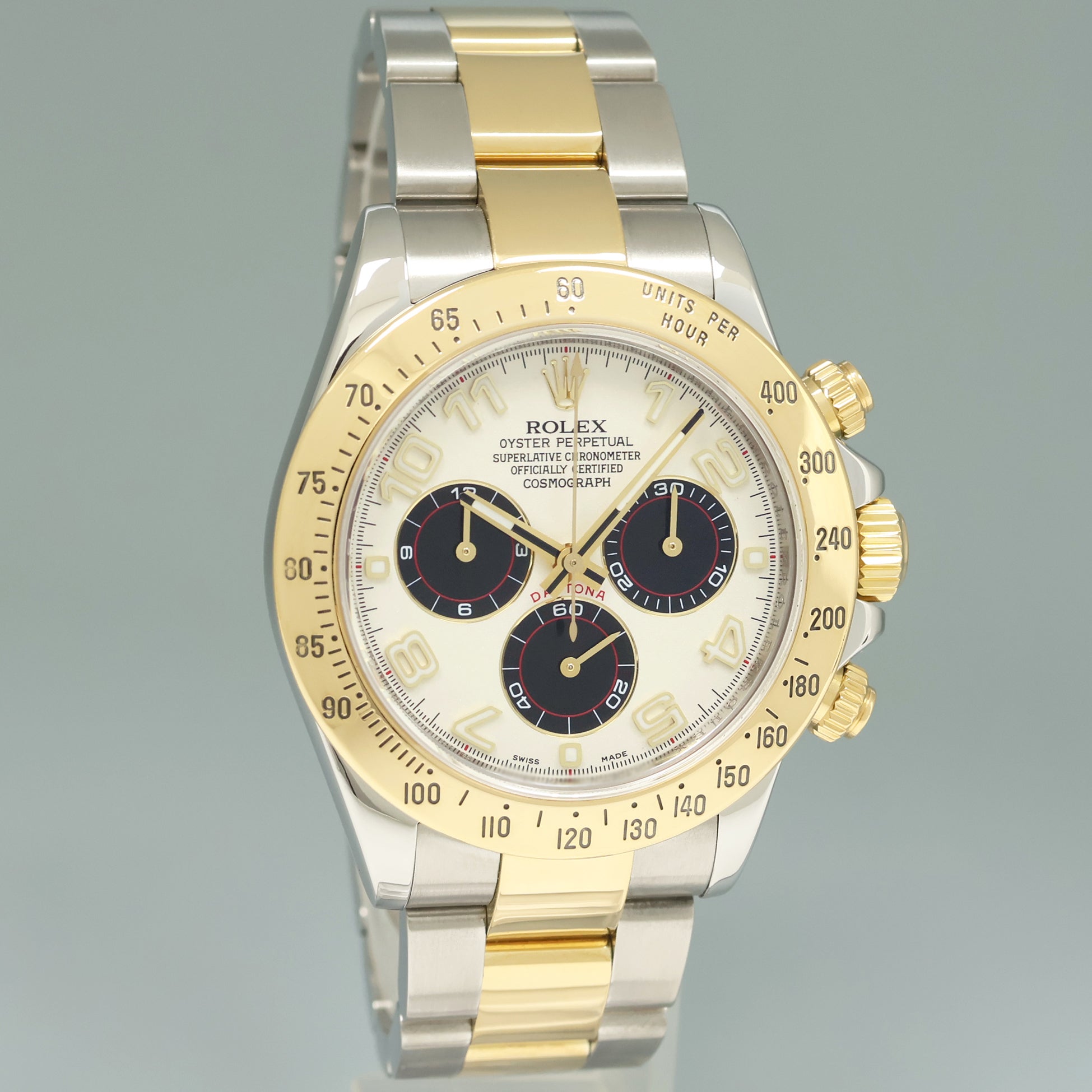 | Dial | Rolex White Arabic Numeral Panda Chronograph Dial |