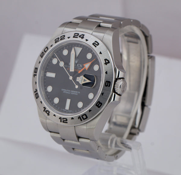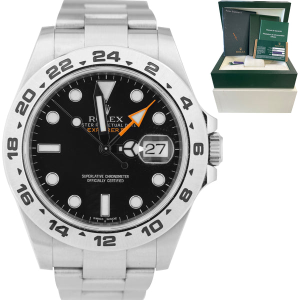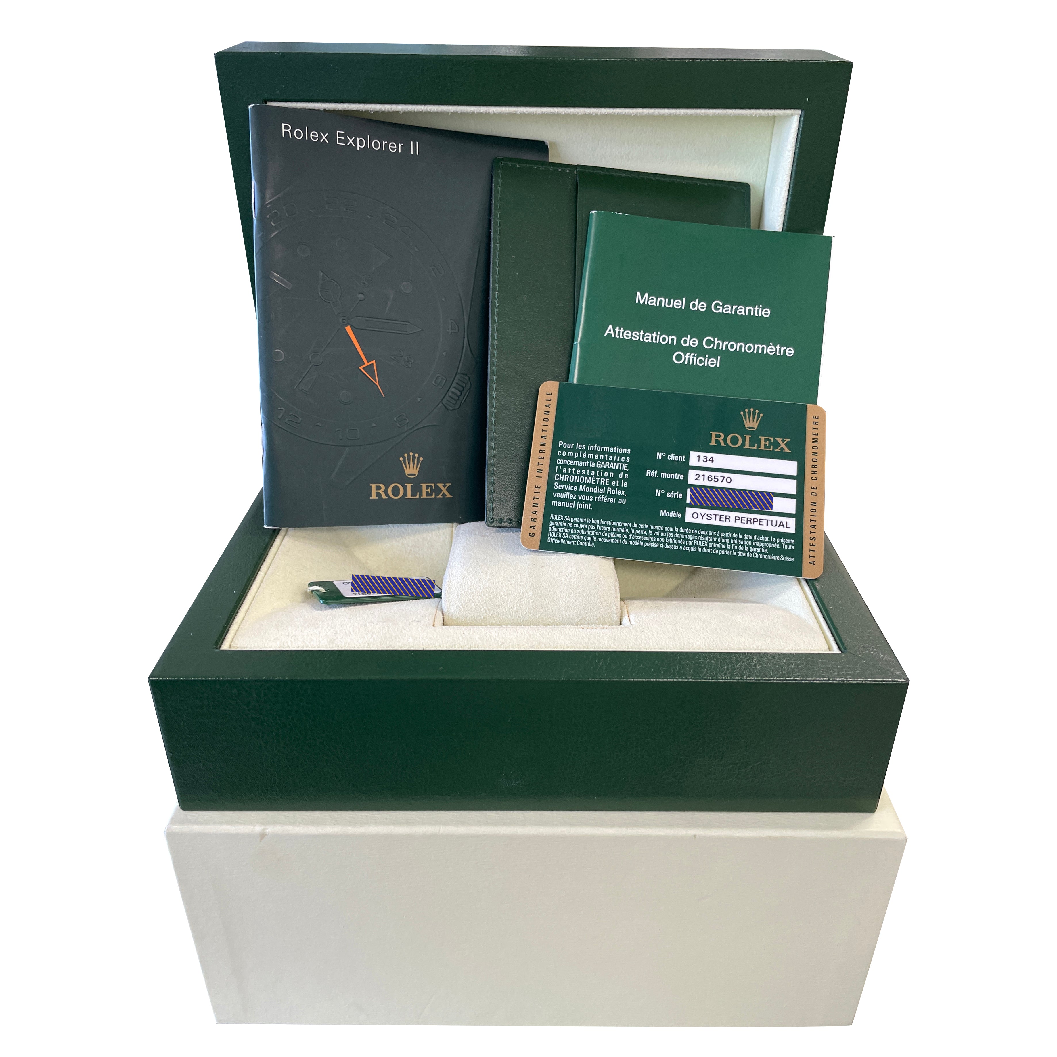 2014 Rolex Explorer II Black Orange Stainless Steel 42mm GMT Watch 216570 B+P