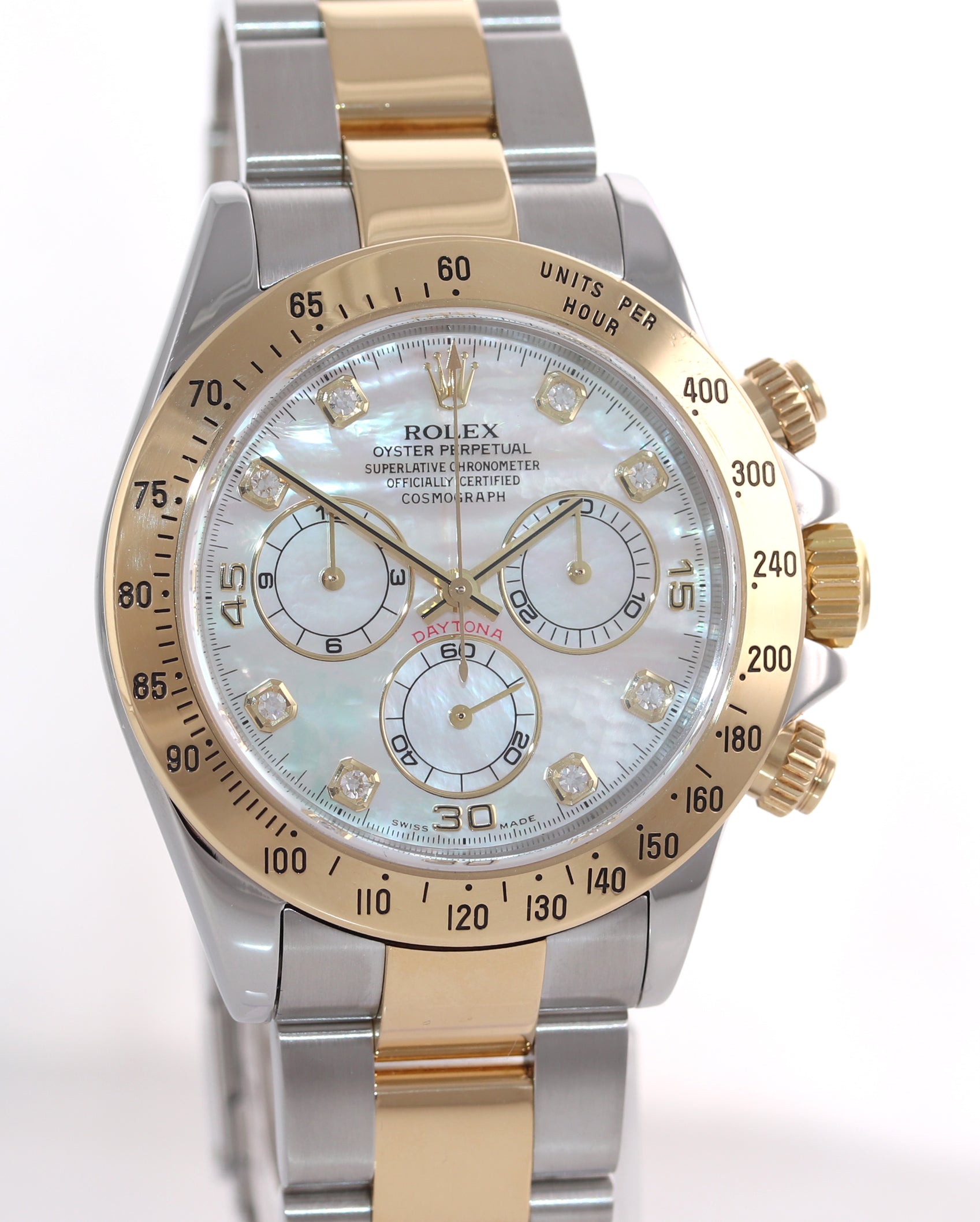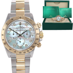 Rolex Daytona Cosmograph 116523 Mother of Pearl Diamond Dial Steel 18k Gold Two Tone Watch