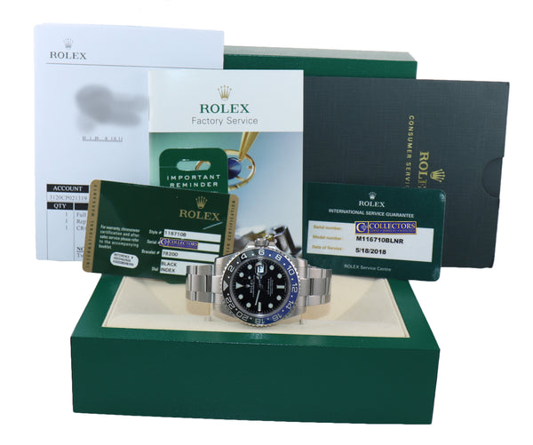 2018 RSC & PAPERS Rolex GMT Master Blue 116710 BLNR Ceramic Bezel Batman Watch Box