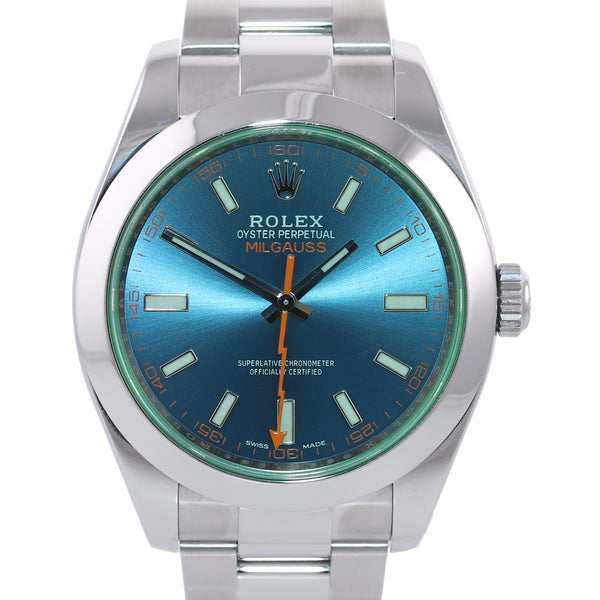 2017 PAPERS Rolex Milgauss Blue Dial Anniversary Green Crystal 116400GV Steel Watch
