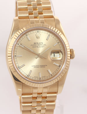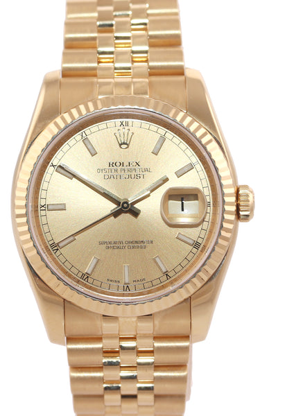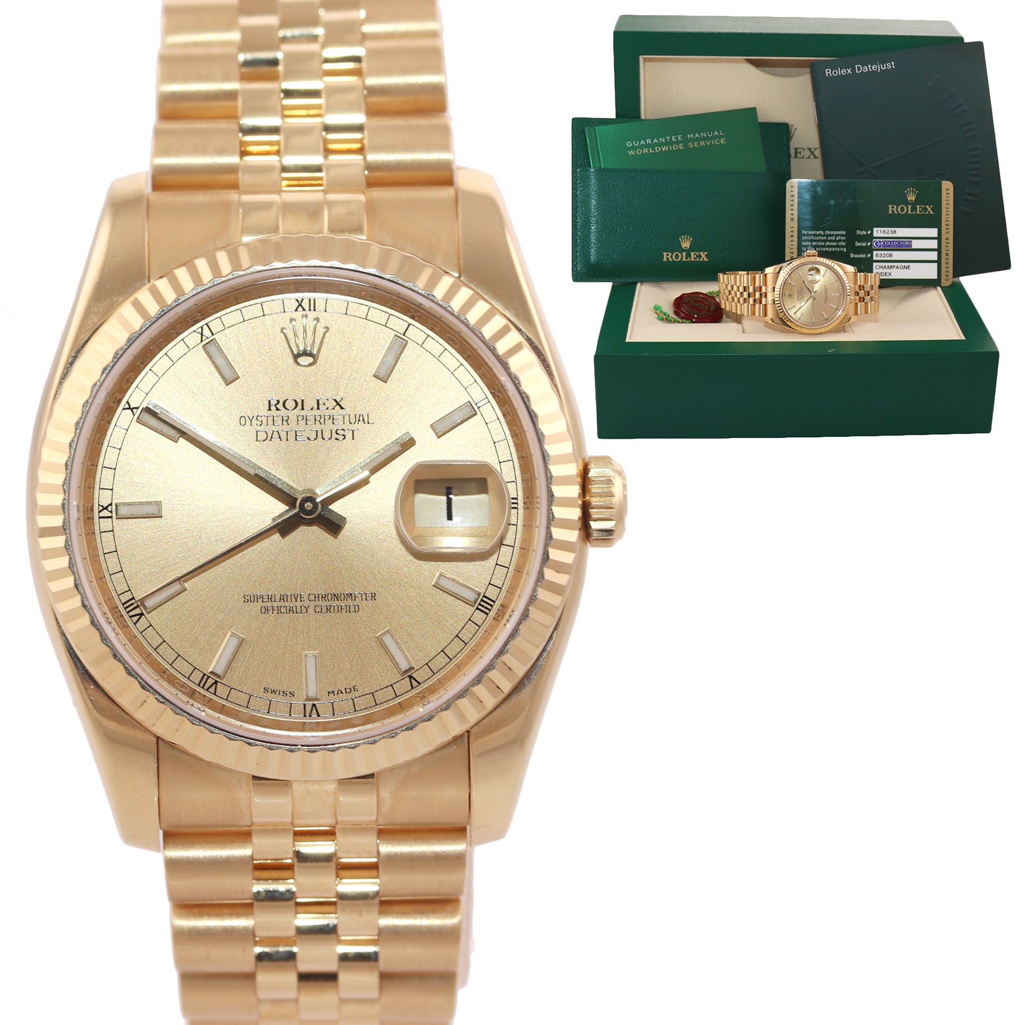 MINT PAPERS Rolex DateJust Jubilee 36mm 116238 18k Gold Champagne Jubilee Watch
