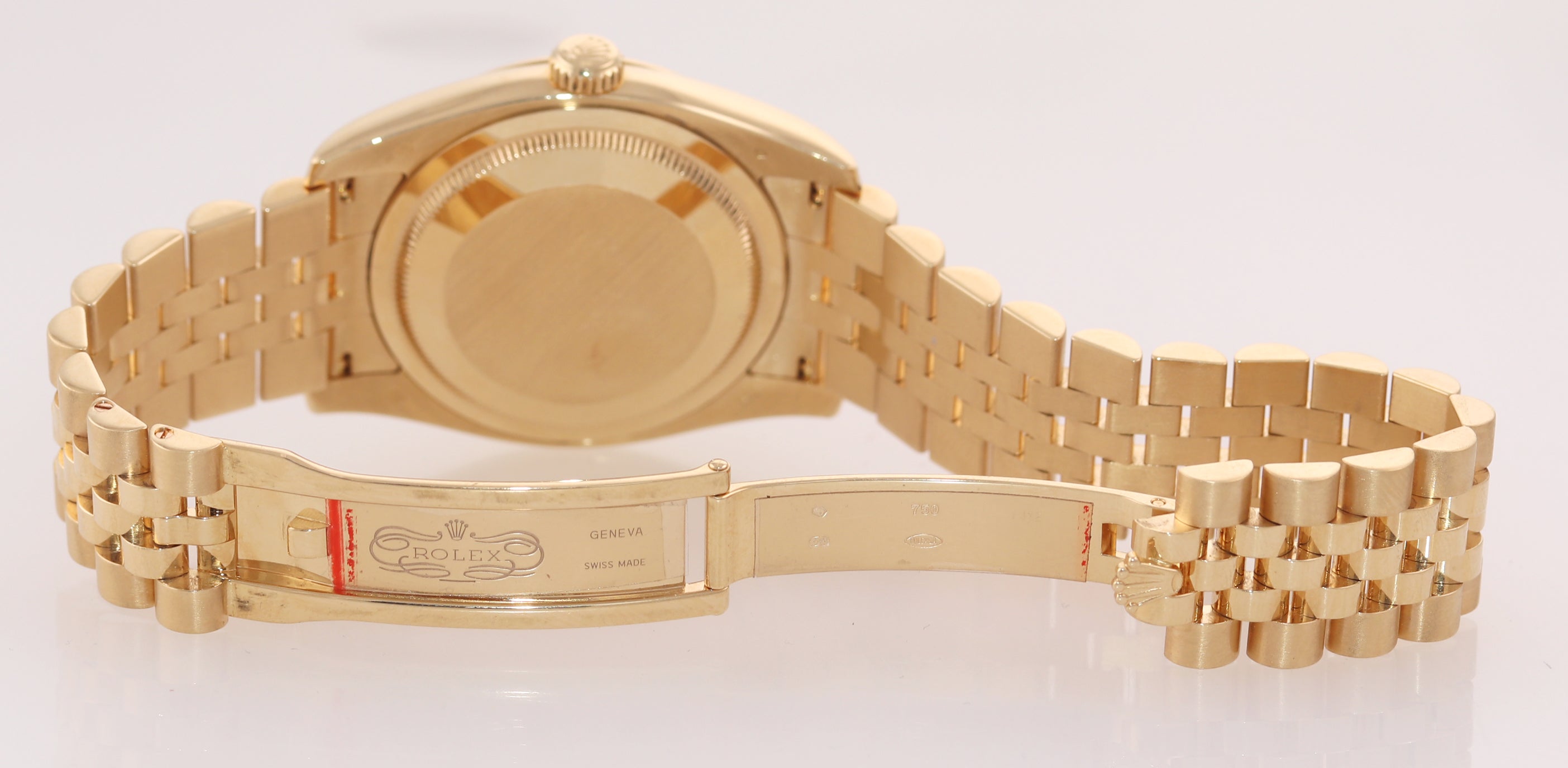 | Band | Original Rolex Solid End Link (SEL) Solid 18k Yellow Gold Jubilee Bracelet with a concealed folding Crown Clasp |