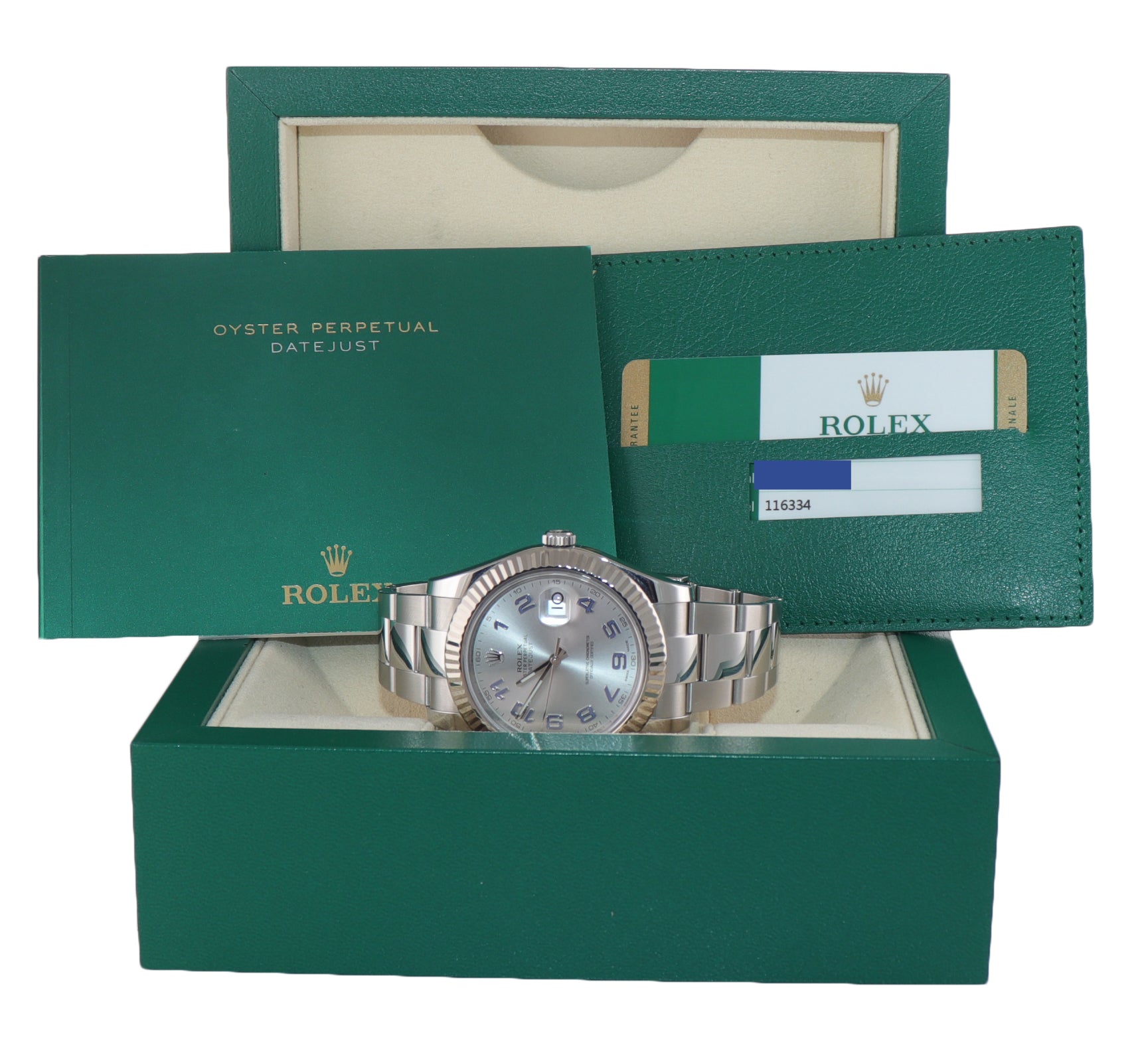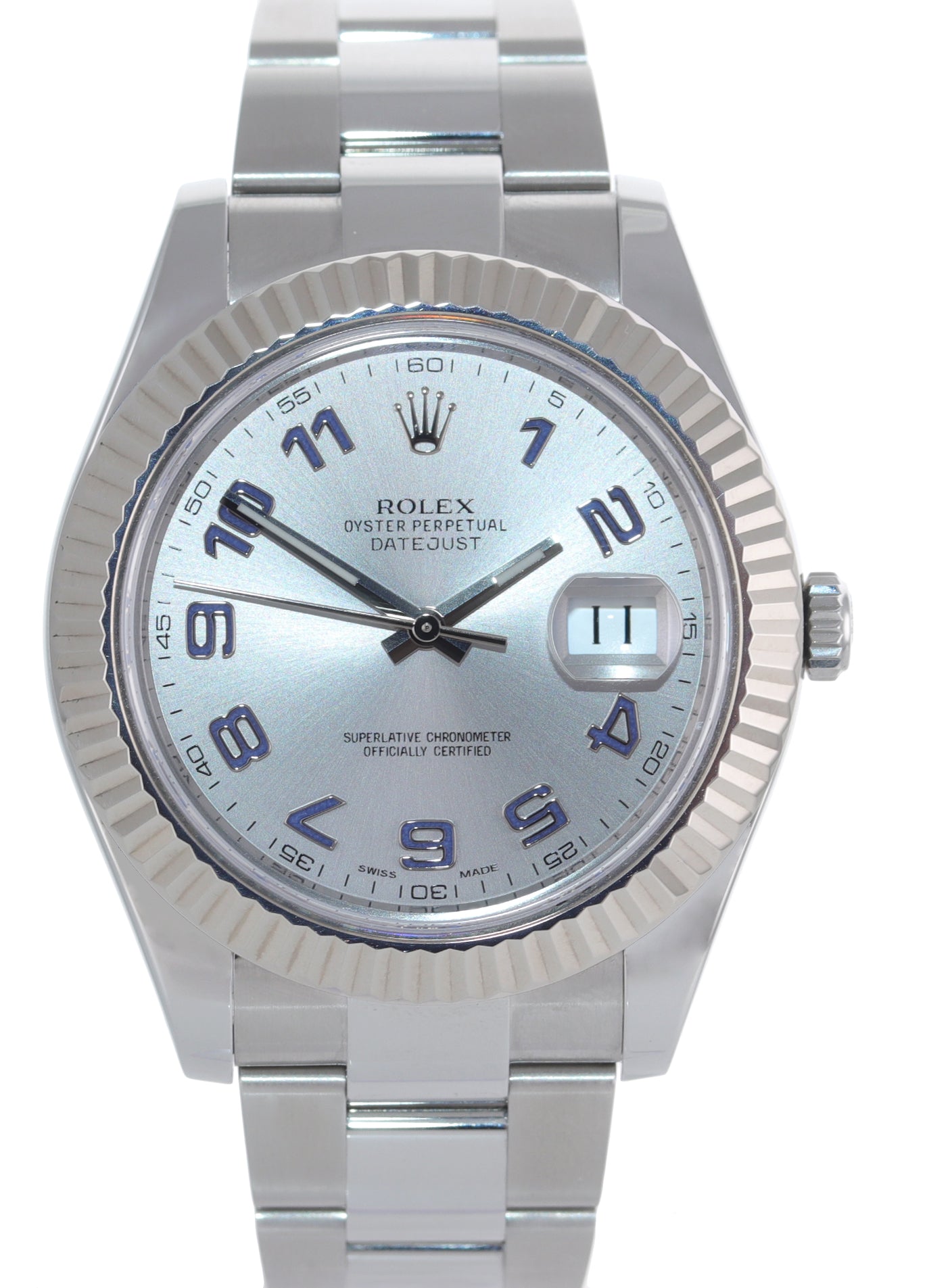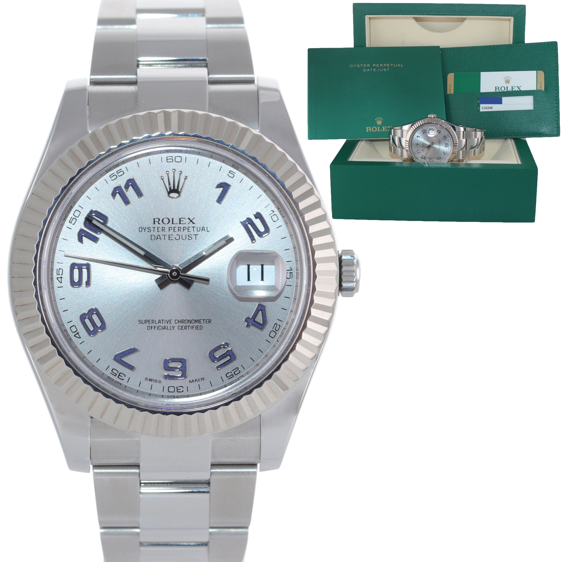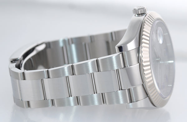 Rolex Datejust II 41mm 18k White Gold Stainless Steel Silver Blue Blue 116334 Watch Box
