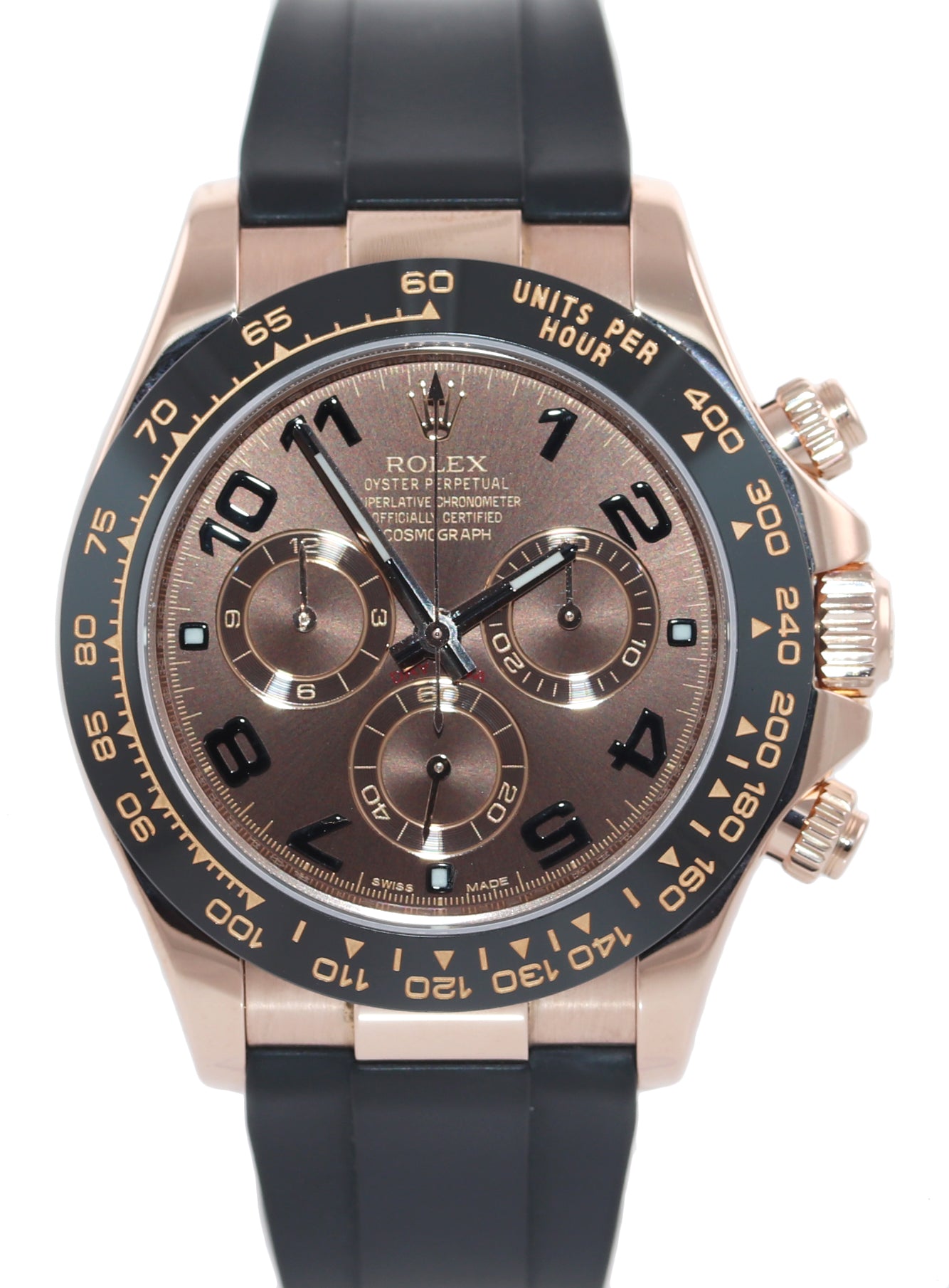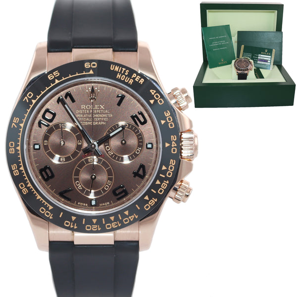 PAPERS Rolex Daytona Chocolate Arabic Oysterflex Ceramic 116515 18K Rose Gold 40mm