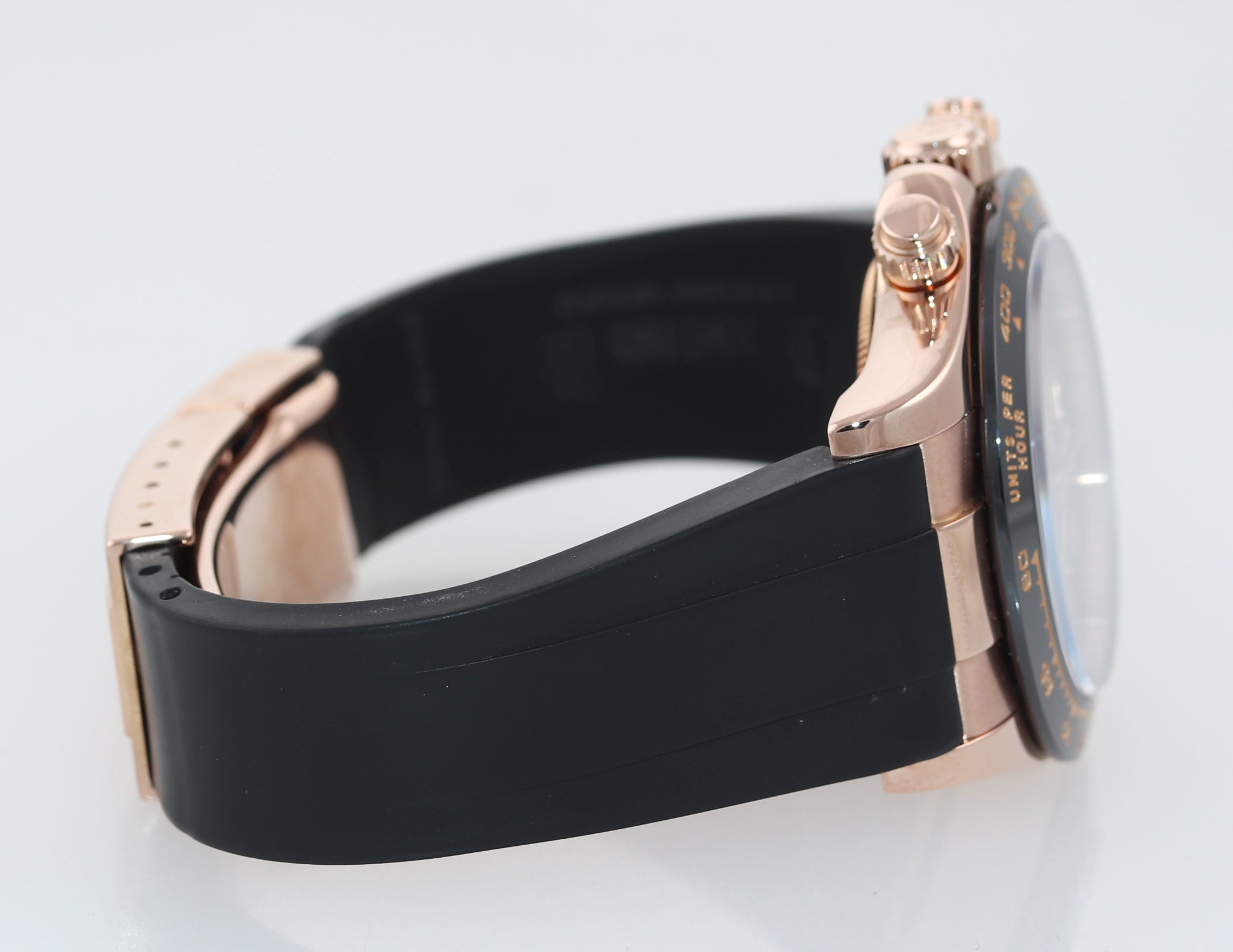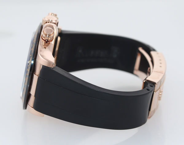 | Band | Original Rolex Black Oysterflex Strap with 18K Rose Gold Flip Lock Deployment Clasp |