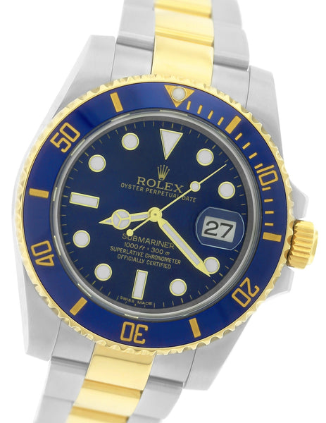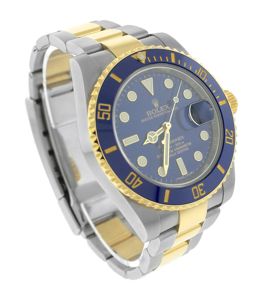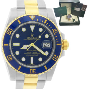 SUNBURST BLUE 2016 Rolex Submariner Ceramic Two-Tone Gold Dive Watch