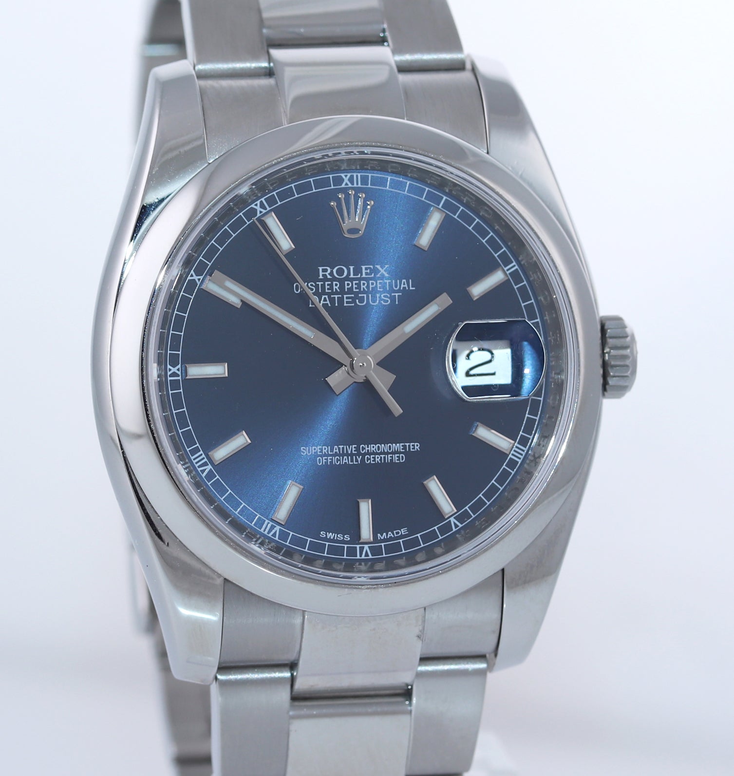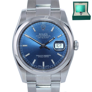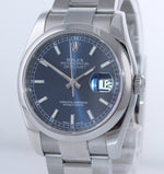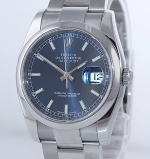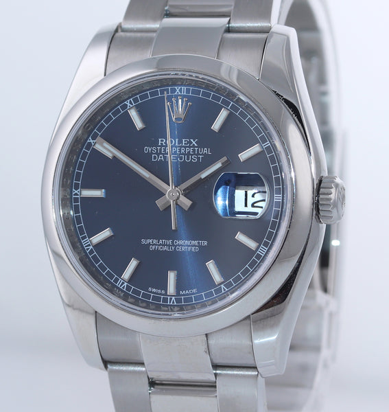 MINT 2016 Rolex DateJust 36 116200 Blue Stick Steel 36mm Smooth Bezel Watch Box