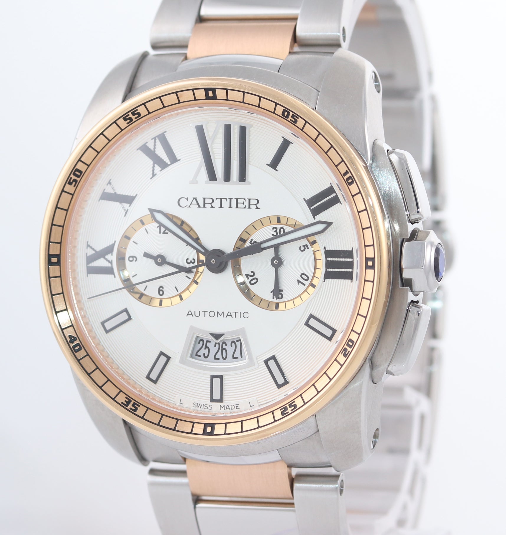 2017 PAPERS Cartier Calibre 3578 Chronograph 18K Rose Two Tone W7100042 Watch