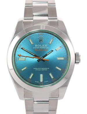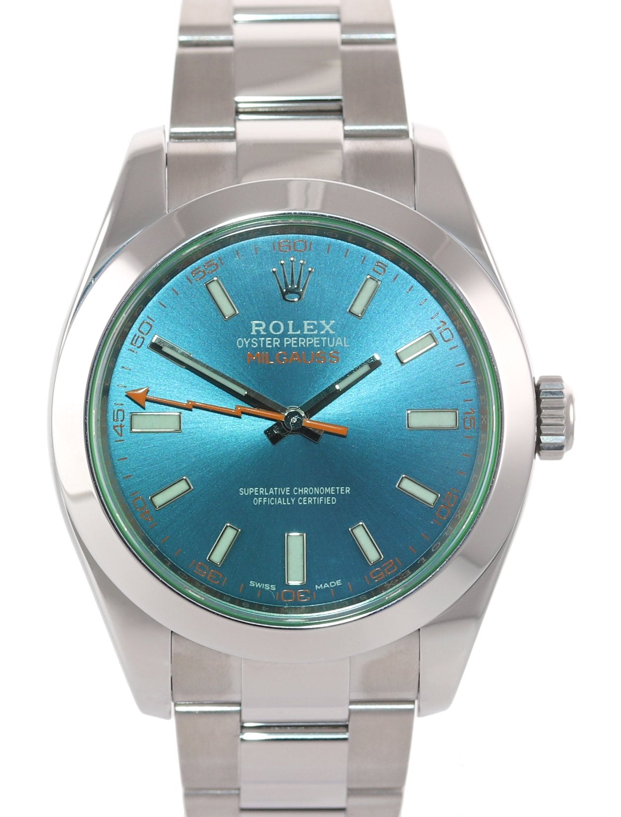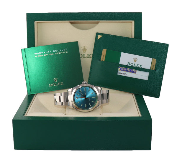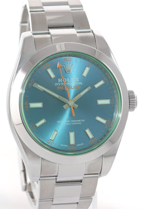 2018 PAPERS Rolex Milgauss Blue Dial Anniversary Green Crystal 116400GV Steel Watch