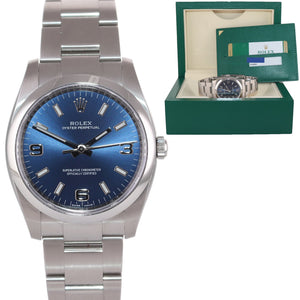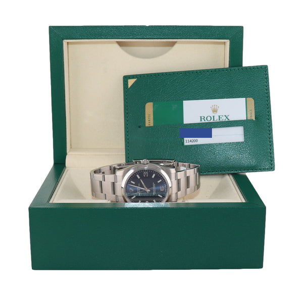 2019 PAPERS Rolex Oyster Perpetual 34mm Blue 114200 Steel Watch Box
