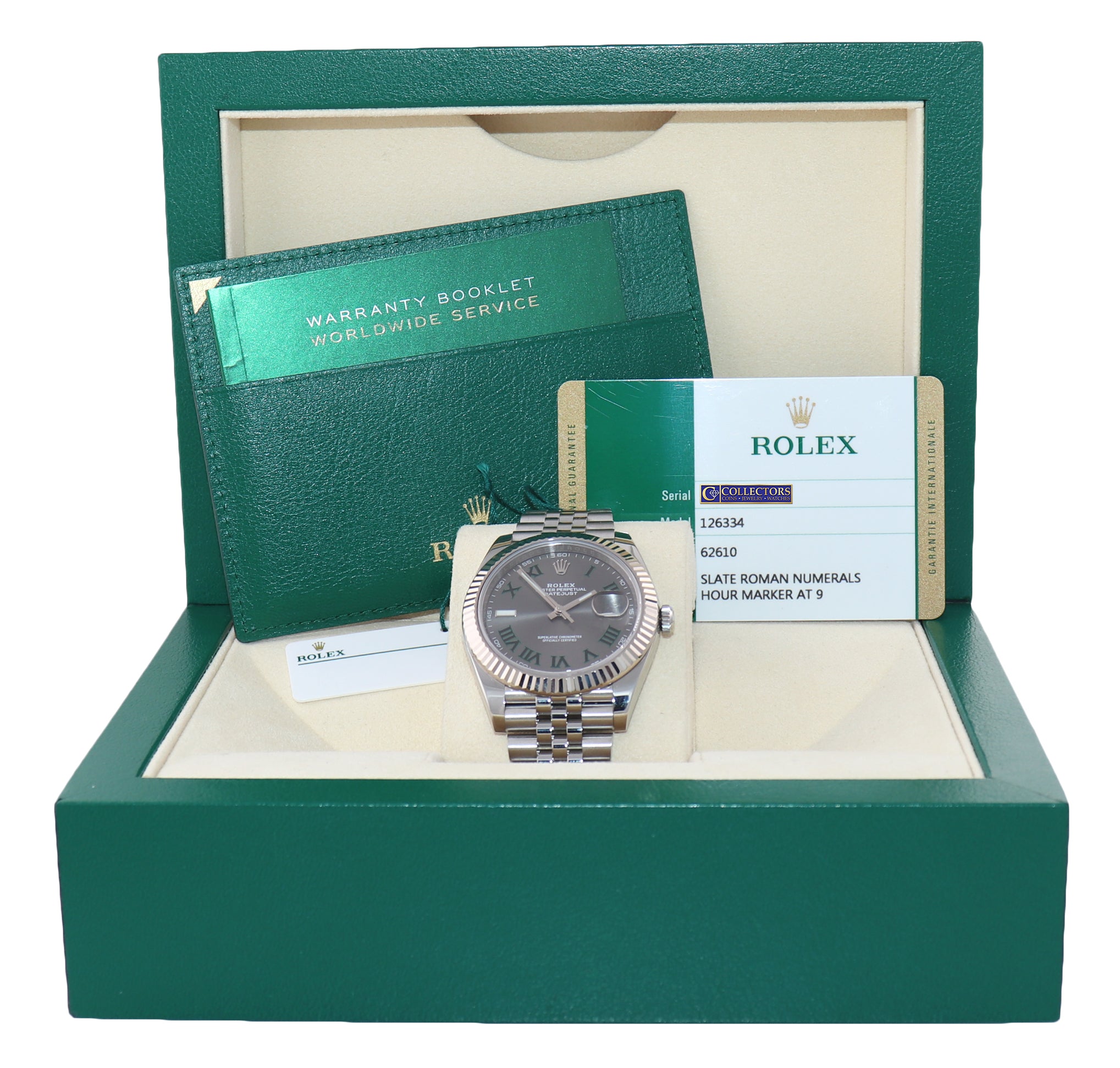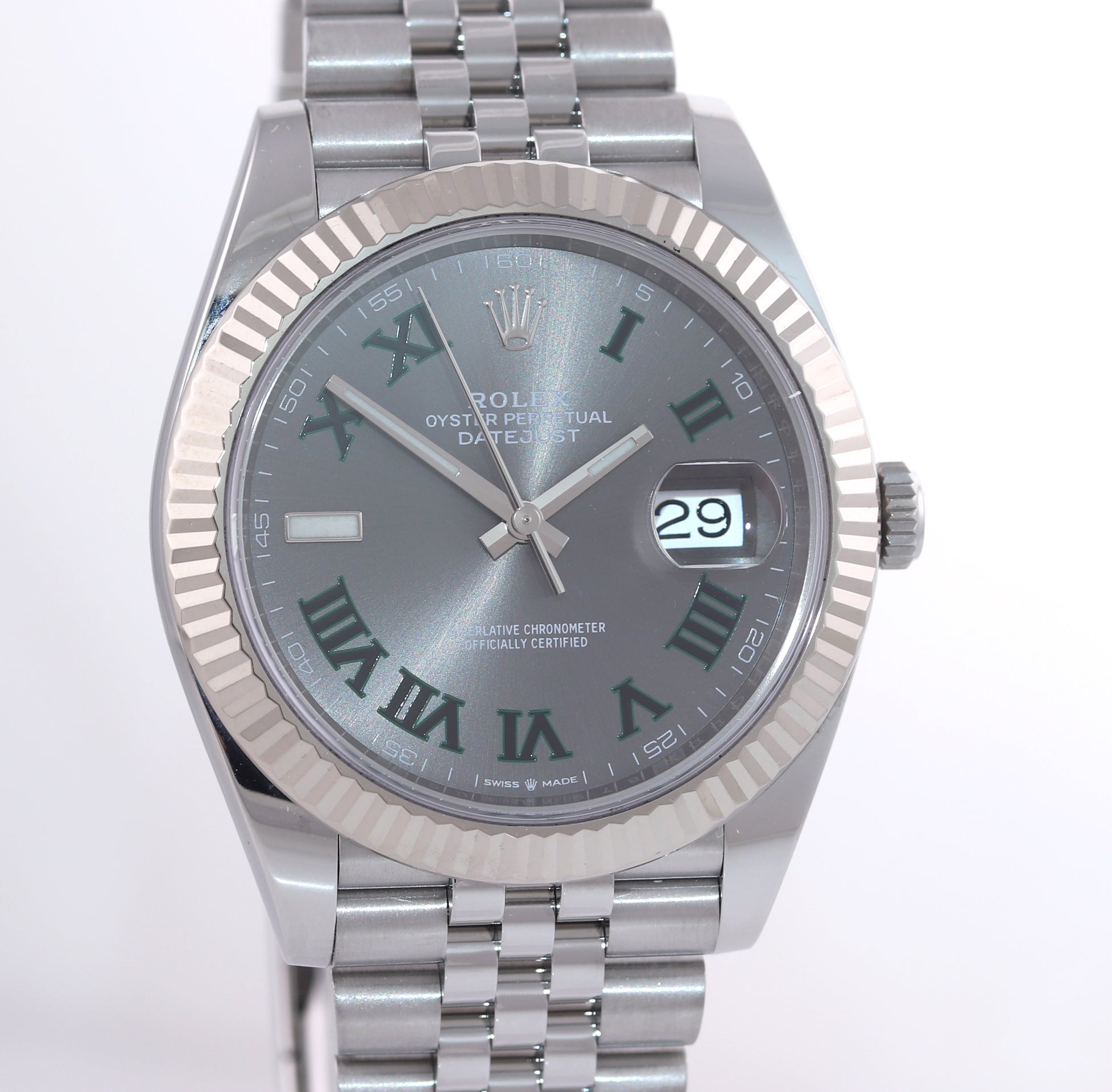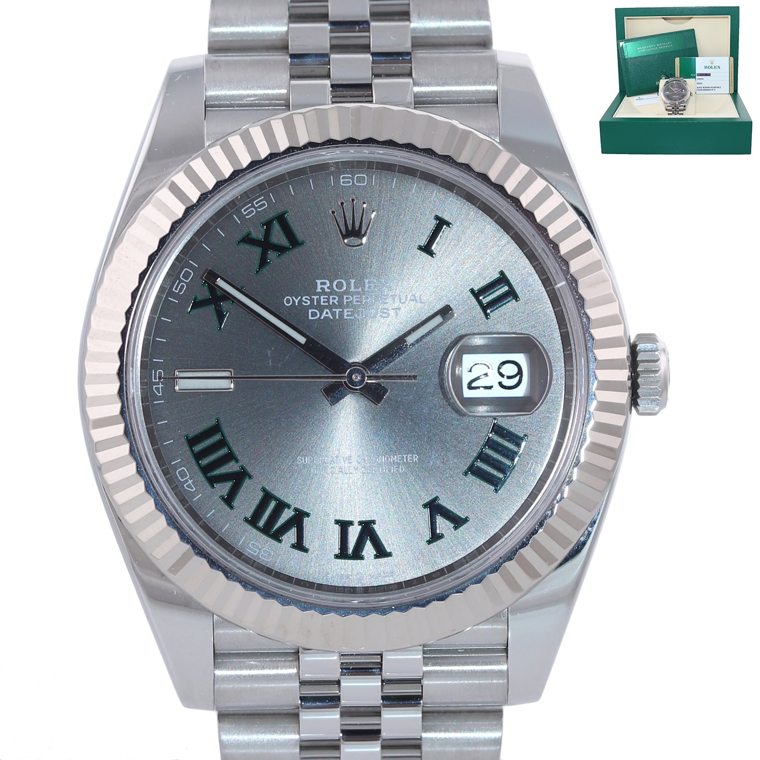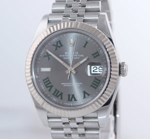 PAPERS 2018 MINT Rolex DateJust 41 Slate Roman 126334 Steel 18K Jubilee Wimbledon Watch
