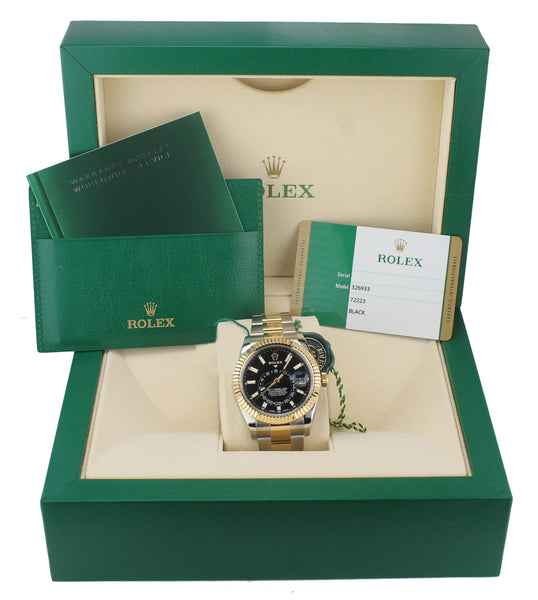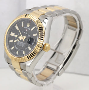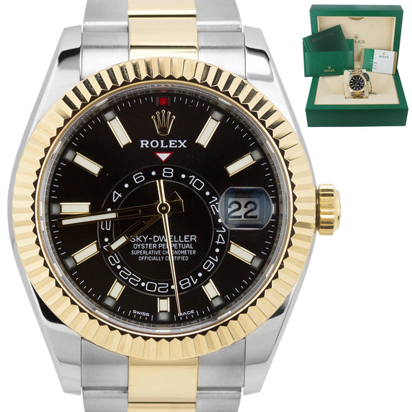2019 P MINT Rolex Sky-Dweller 326933 Black 18K Two Tone Gold Stainless 42mm Watch