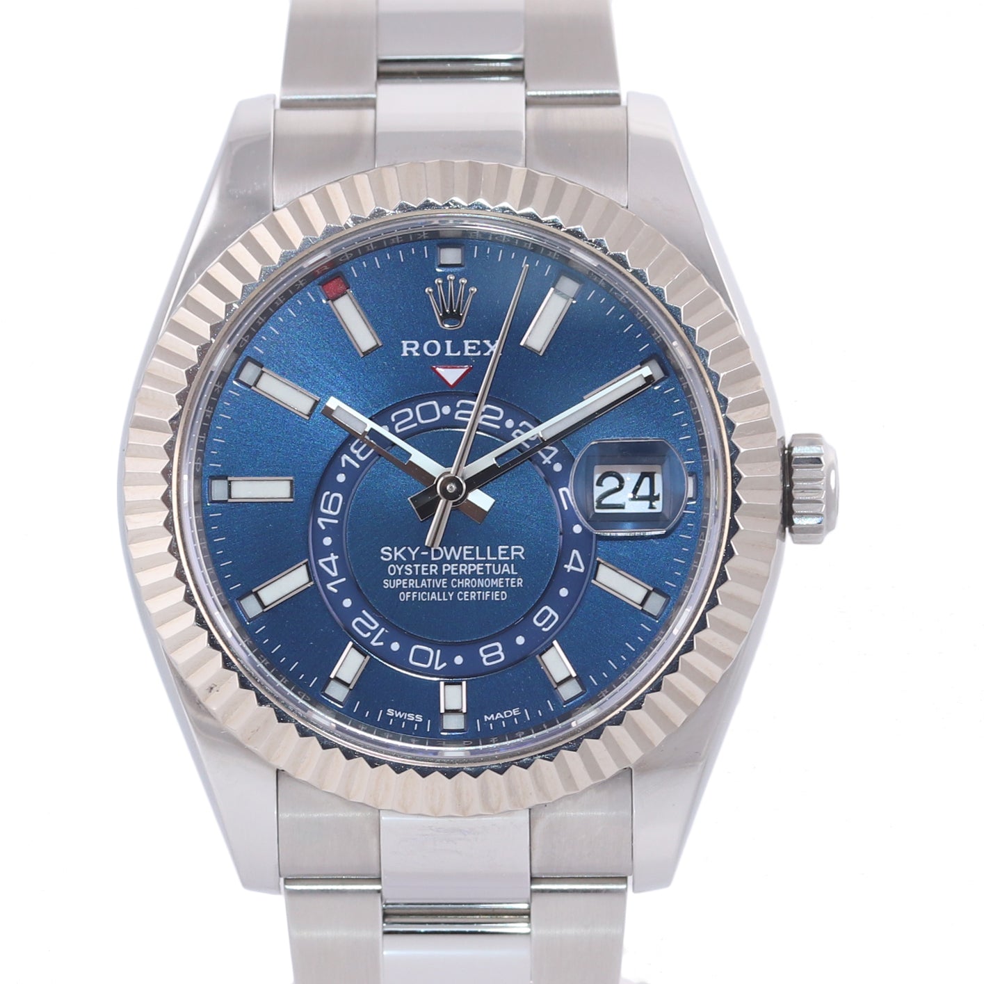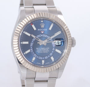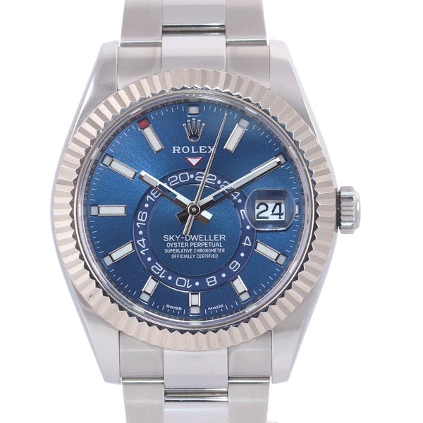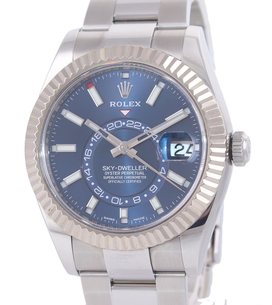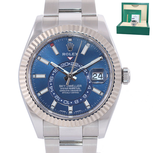 2018 PAPERS MINT Rolex Sky-Dweller Stainless White Gold BLUE DIAL 42mm Watch 326934