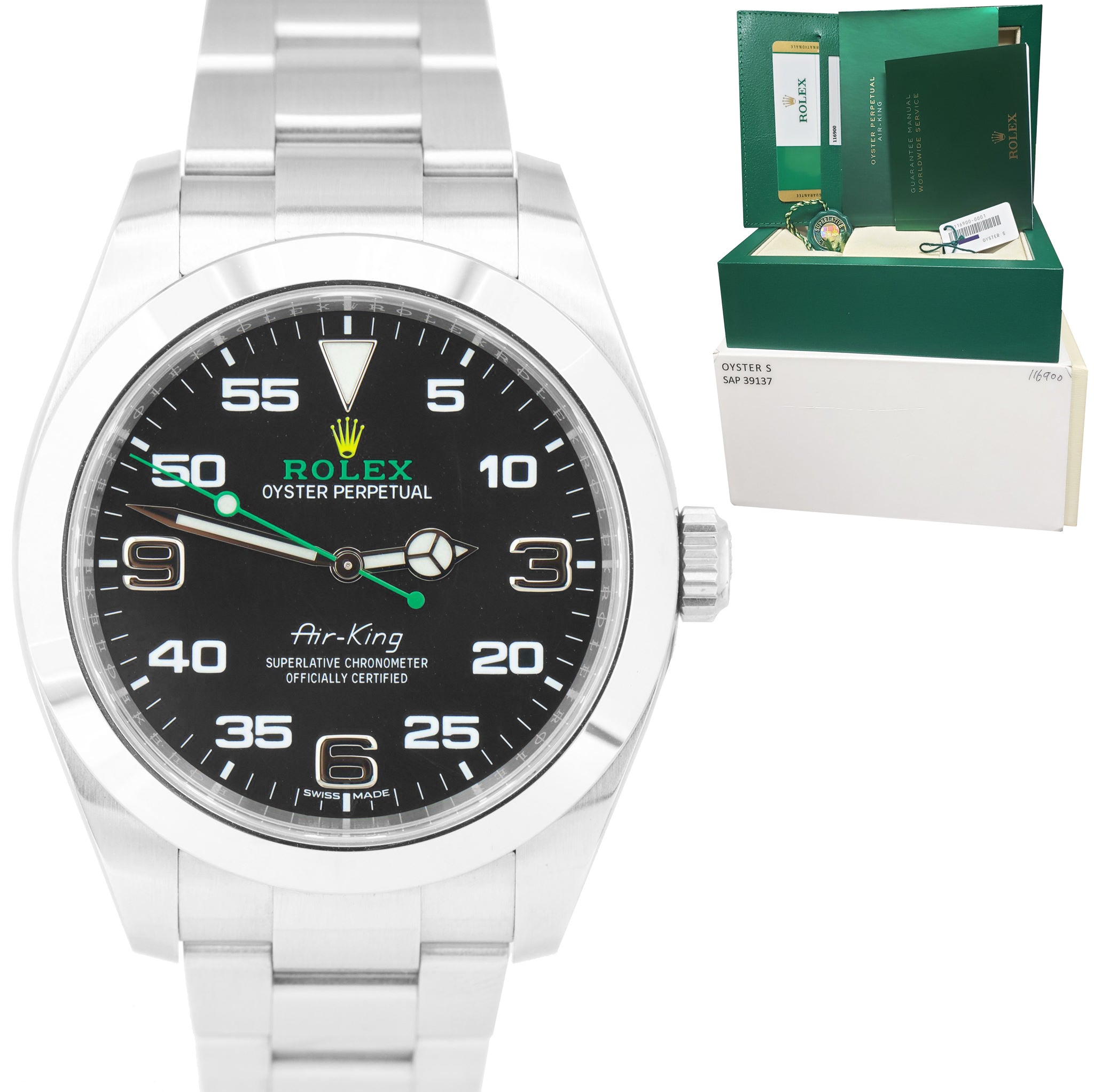2018 Rolex Air-King 40mm Green Black Stainless Steel Arabic 116900 Watch B+P