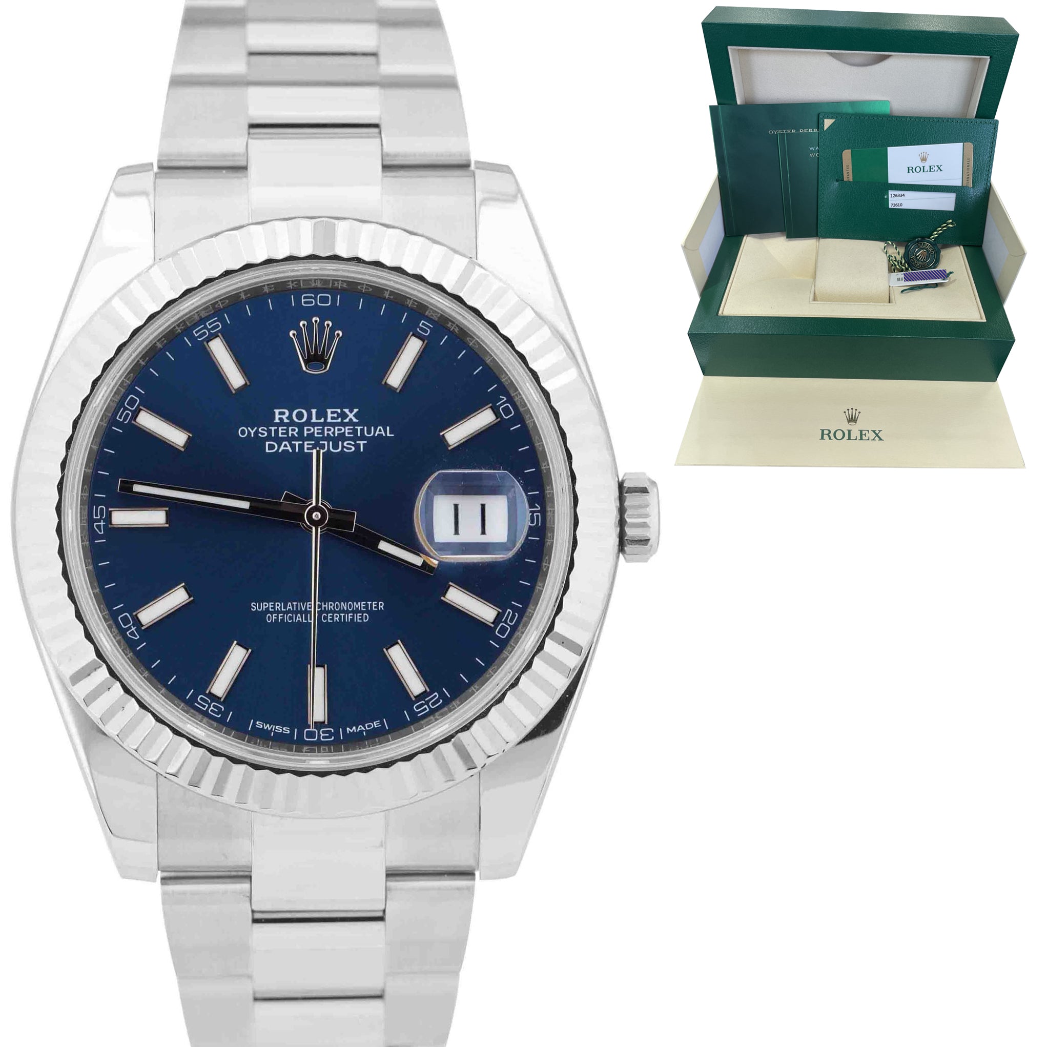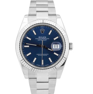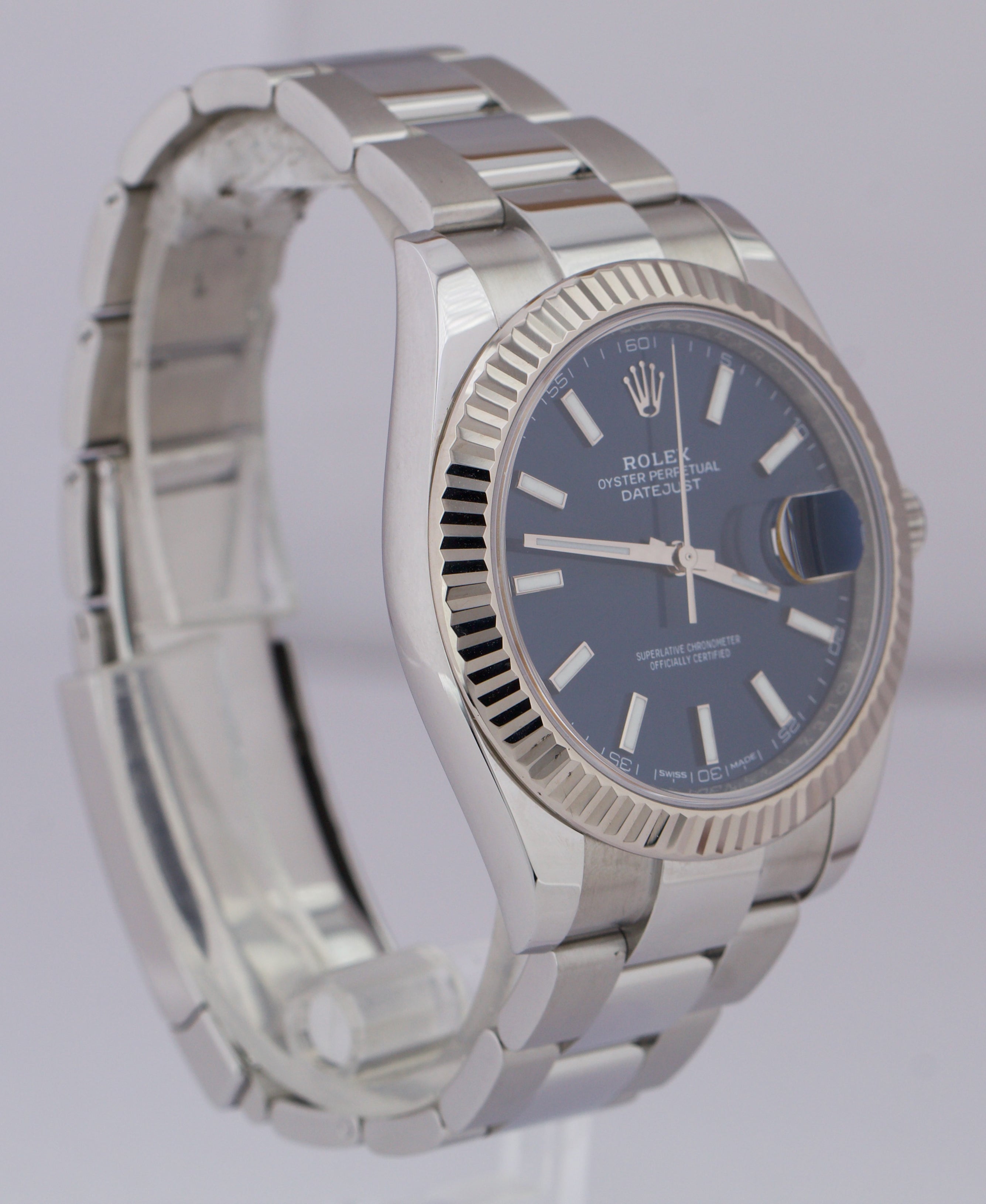 2018 Rolex DateJust 41 Blue Stainless Steel 18K WG Fluted Oyster Watch 126334