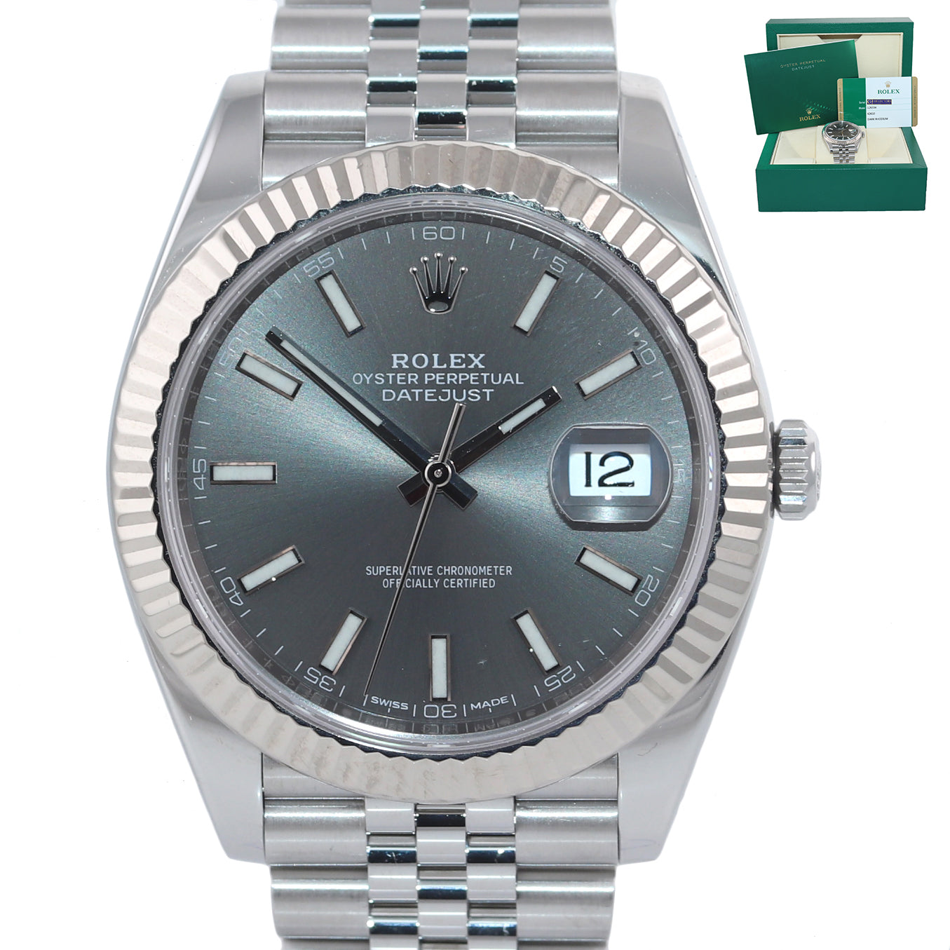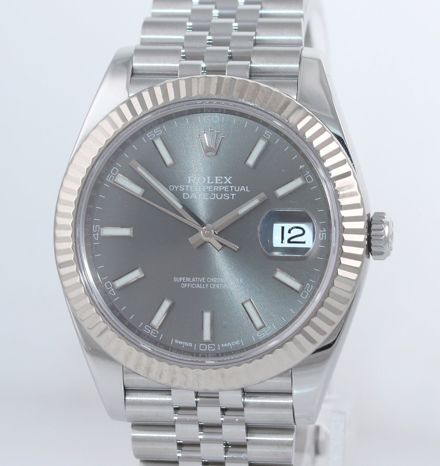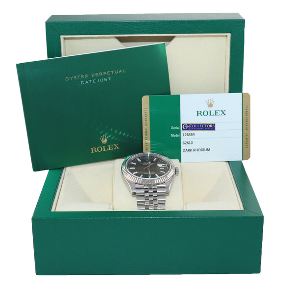 MINT BOX PAPERS Rolex DateJust 41 Dark Rhodium 126334 Steel 18K White Gold Jubilee Watch