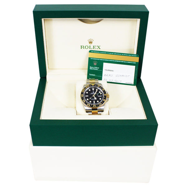 2017 Rolex GMT-Master II Ceramic Black Two-Tone Gold 40mm Watch B+P 116713