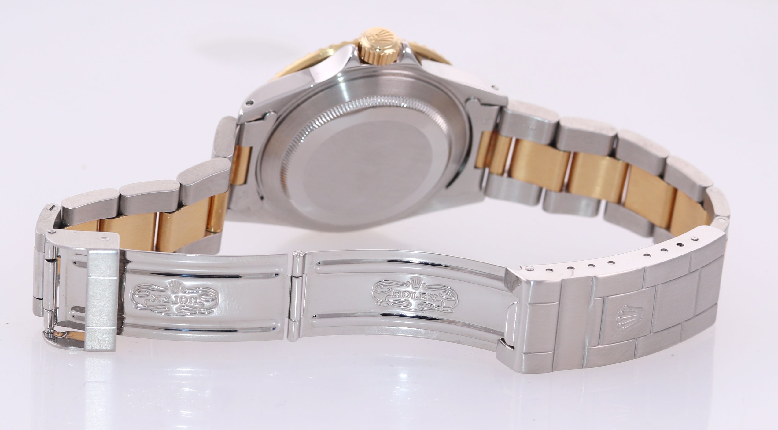 | Band | Original Rolex Two-Tone Oyster Bracelet with a Flip Lock extendable Deployment Clasp with some light flex from use. |