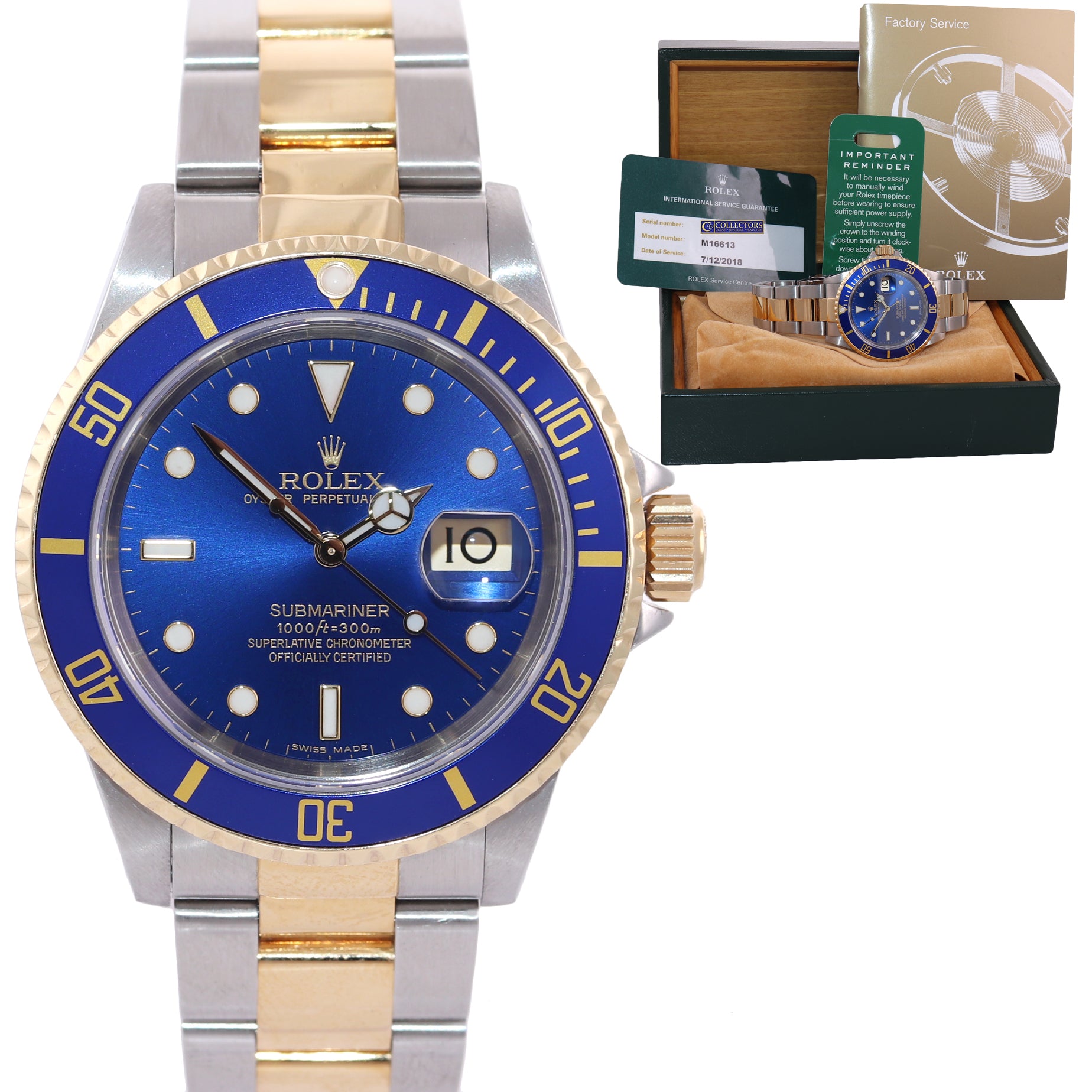 2014 RSC PAPERS Rolex Submariner 16613 Two Tone Steel 18k Gold Blue Watch Box