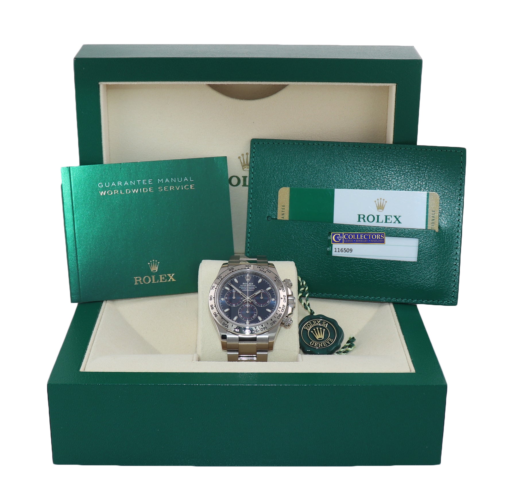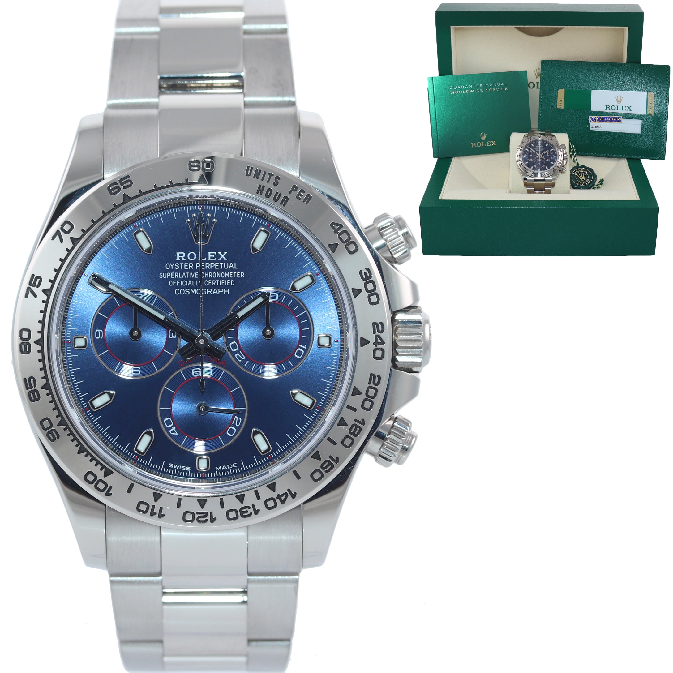 2019 PAPERS Rolex Daytona Blue Dial 116509 18k White Gold Watch Box