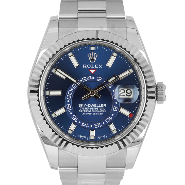 2019 MINT Rolex Sky-Dweller Stainless White Gold BLUE DIAL 42mm Watch 326934