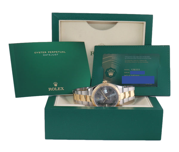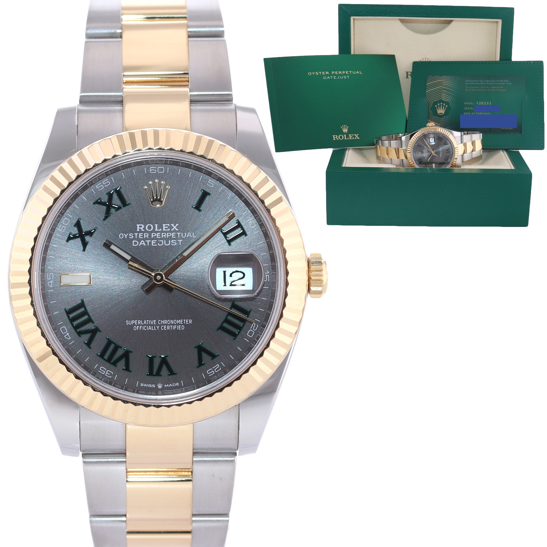2021 PAPERS Rolex DateJust 41 126333 Two Tone Gold Wimbledon Grey Watch