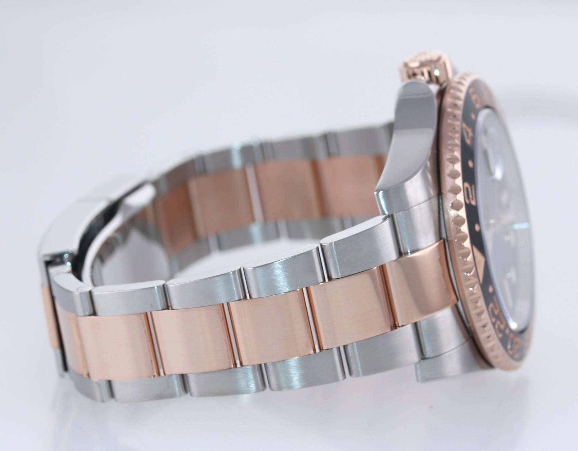 | Band | Rolex Two Tone (18K Everose Gold / Stainless Steel) Solid End Link (SEL) Oyster Bracelet with a Flip Lock easylink extension Deployment Clasp |